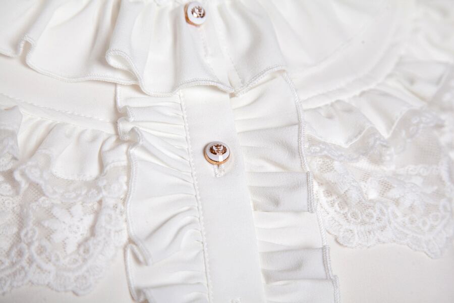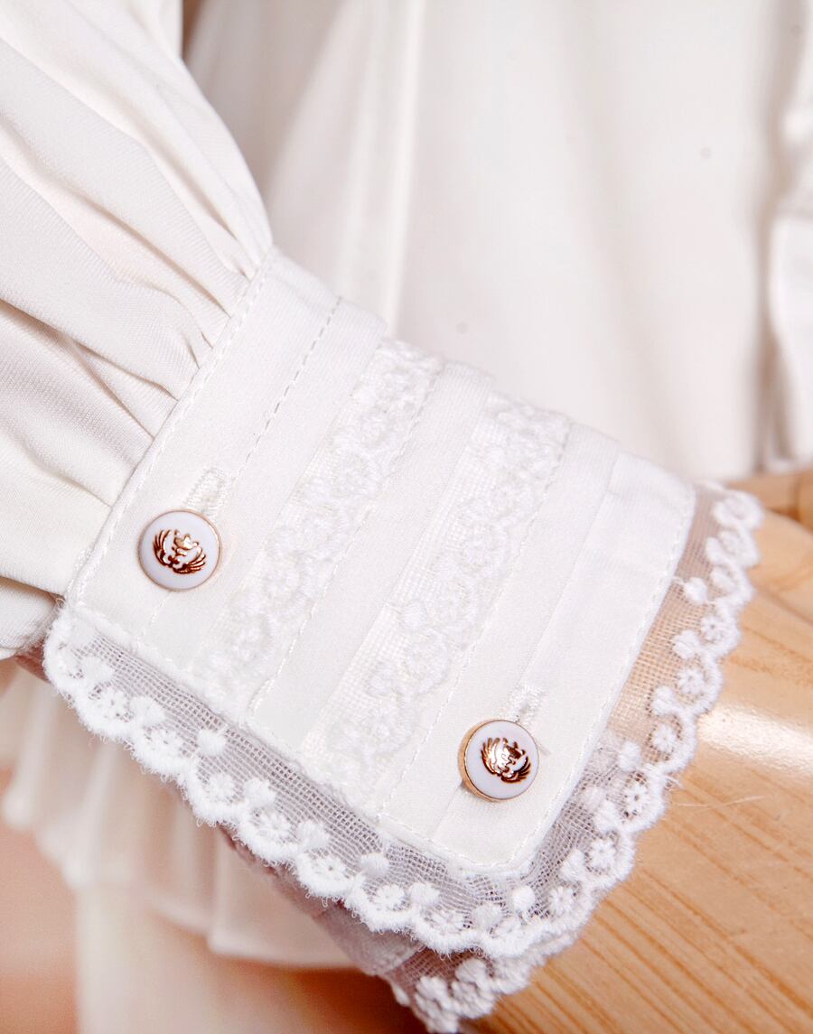 予約商品 ロリータ ティアードカラー長袖ブラウス レース フリル ホワイト ブロック コットン cnalb20325