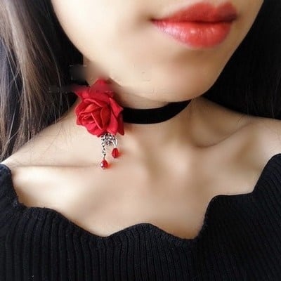 ロリータ ローズモチーフ ベルベット チョーカー 右サイド ゴスロリ 黒ロリ 上品 小物 バラ cnalb20337
