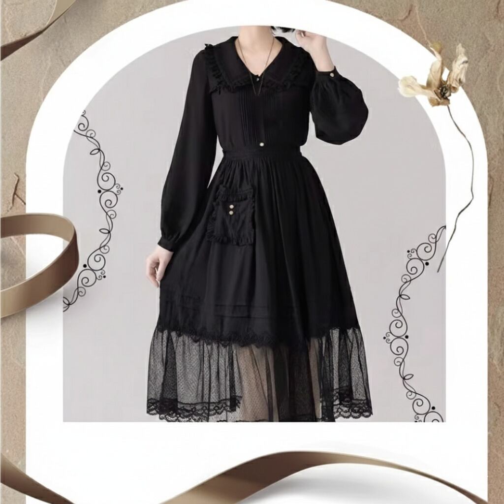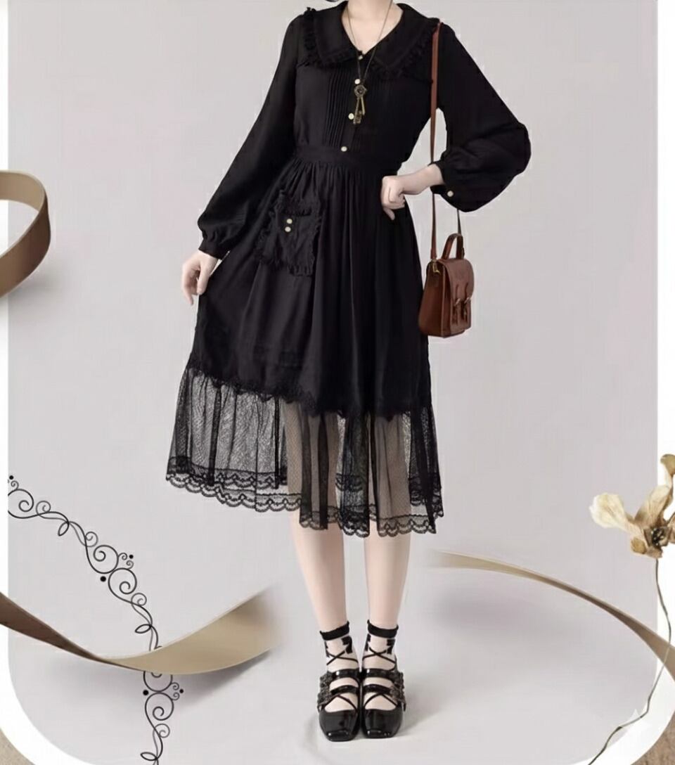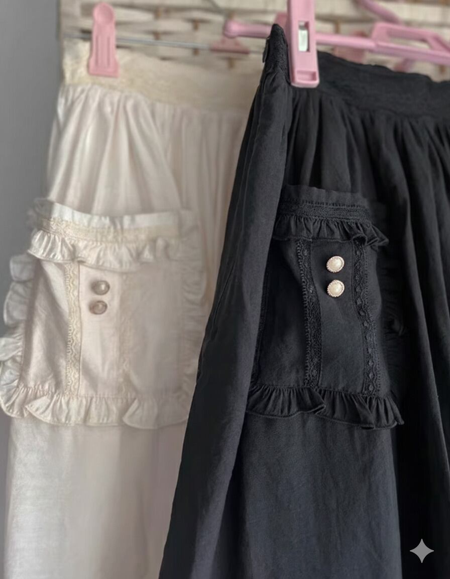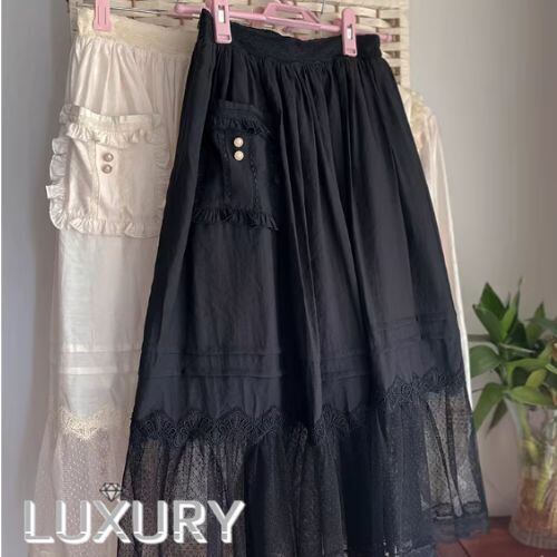 クラシカルロリータ クラロリ スカート のみ 2色 ひざ下丈 ミモレ丈 レース レトロ アンティーク 森ガール ガーリー ナチュラル 清楚 春秋コーデ 普段着 デイリー
