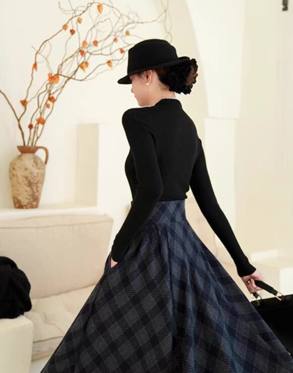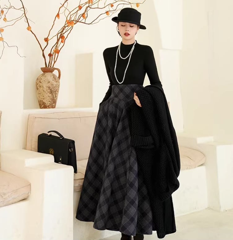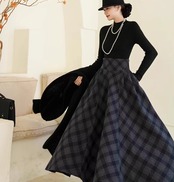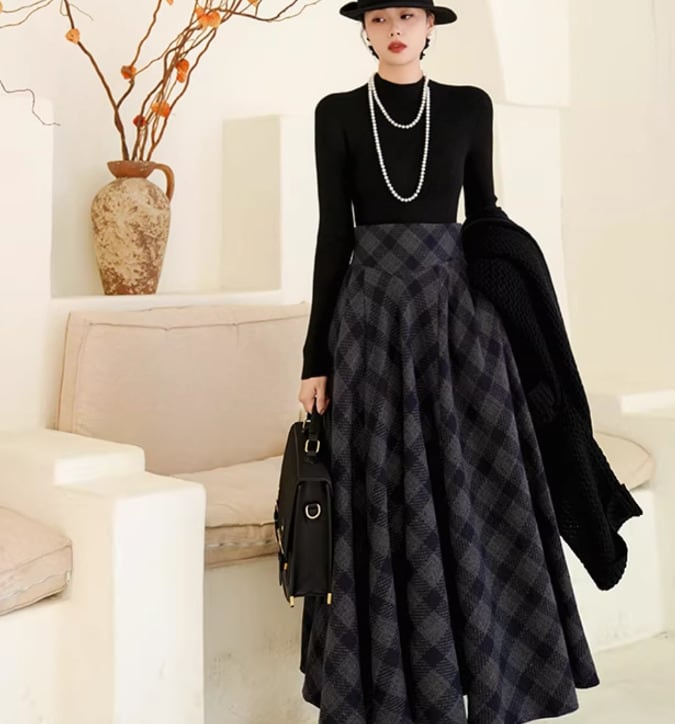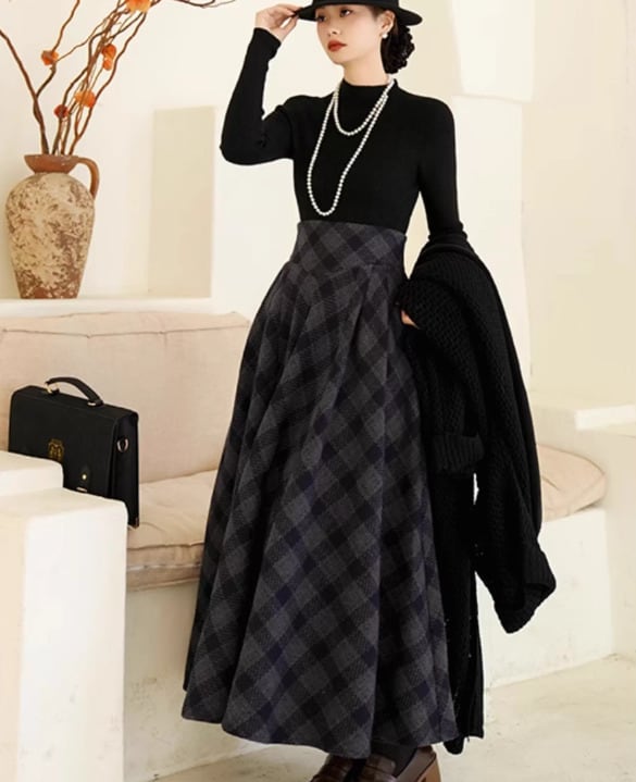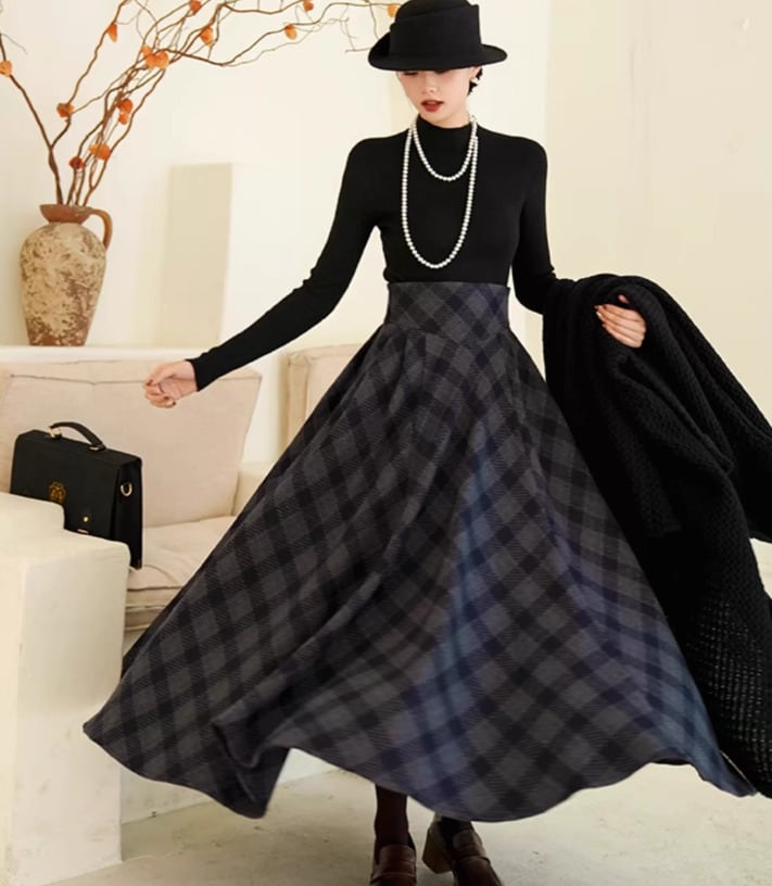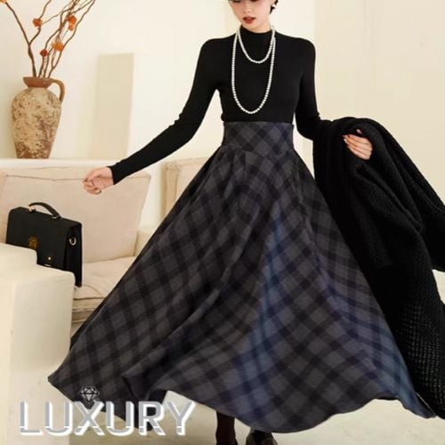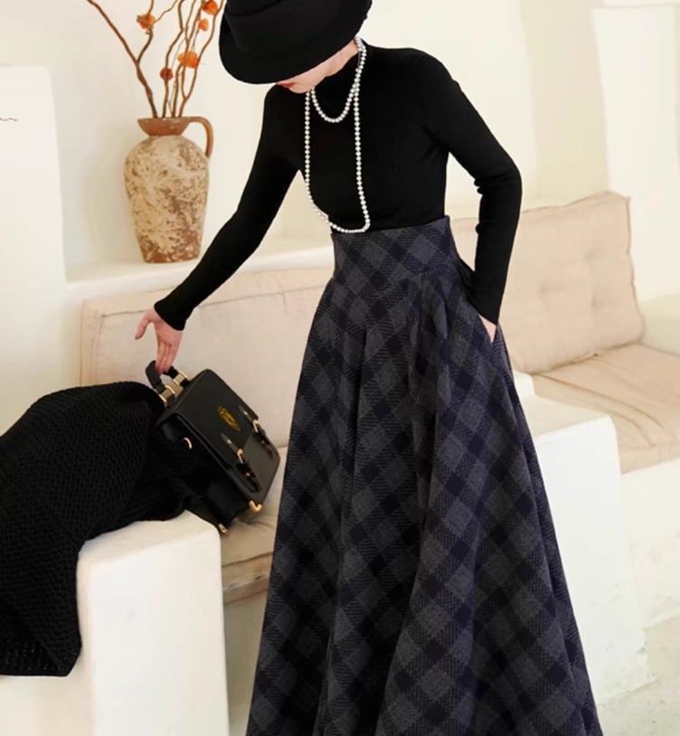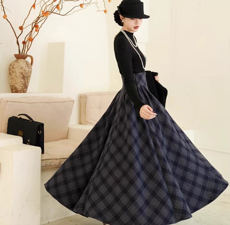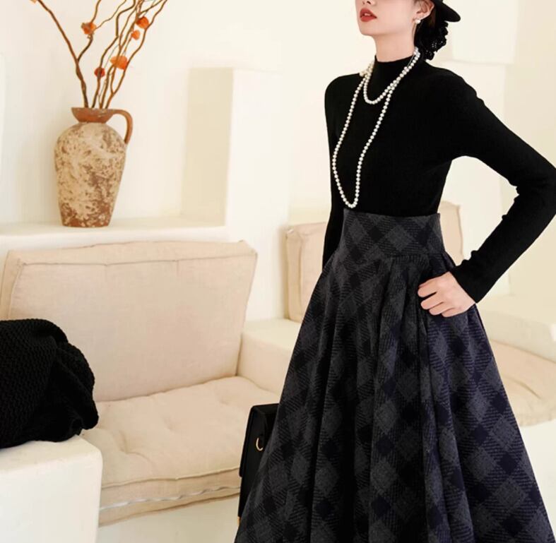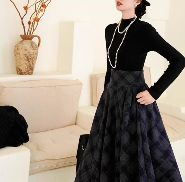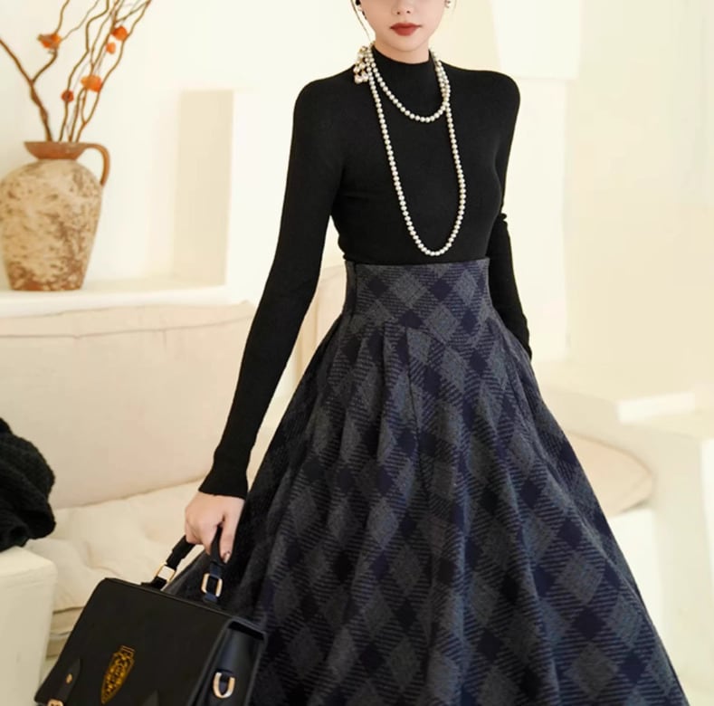 セミロリータ スカート のみ チェック柄 ハイウエスト ウール フレア アンティーク 宮廷風 大人可愛い 清楚 フェミニン エレガント レディース デート デイリー