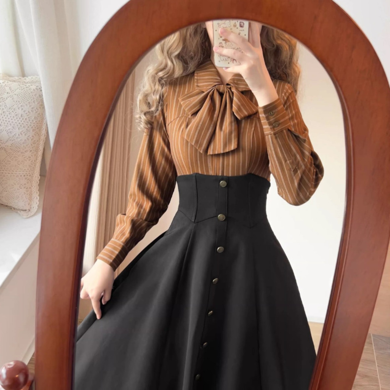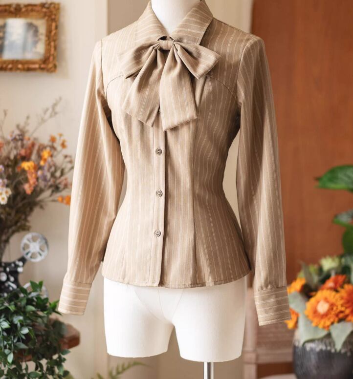 クラシカルロリータ ブラウス のみ リボンタイ付き ストライプ 長袖 英国スタイル 文学少女 ガーリー 清楚 レディースファッション お茶会 デイリー