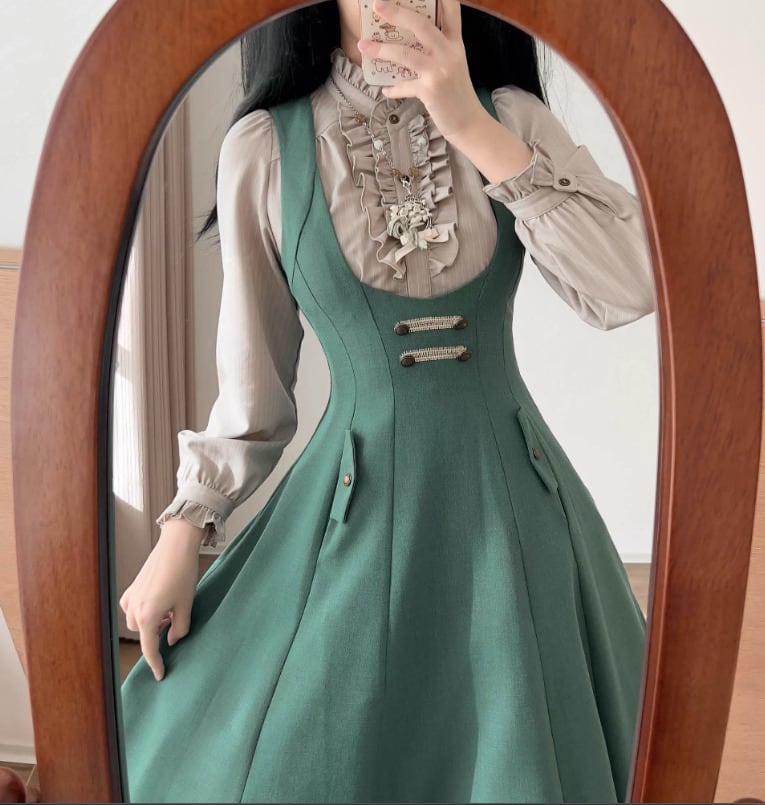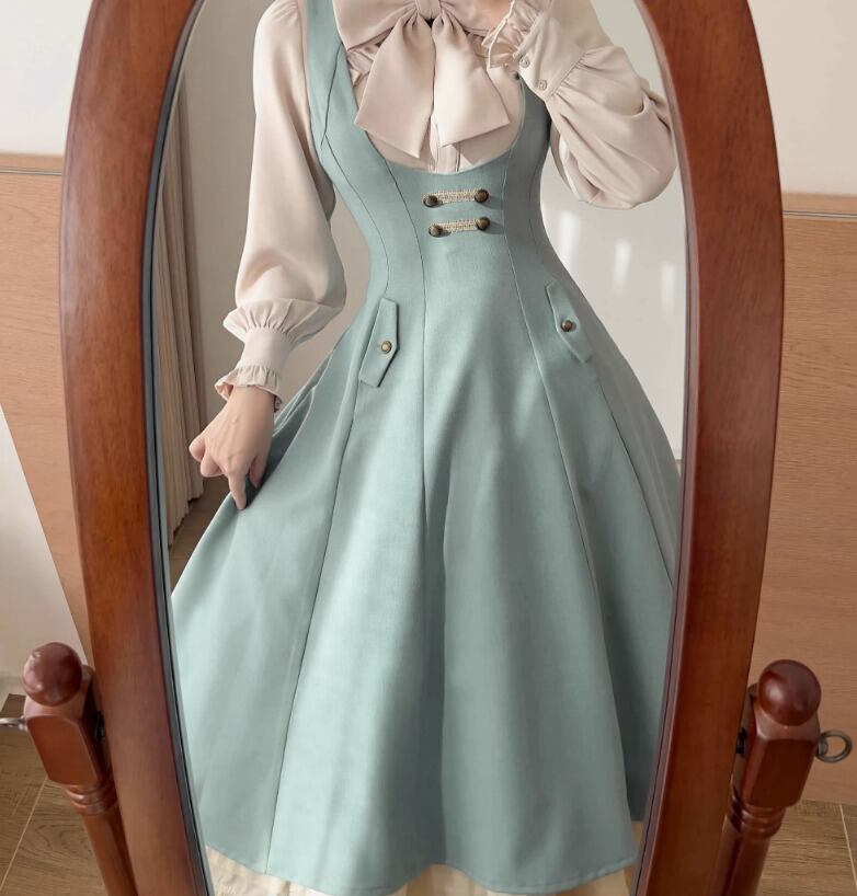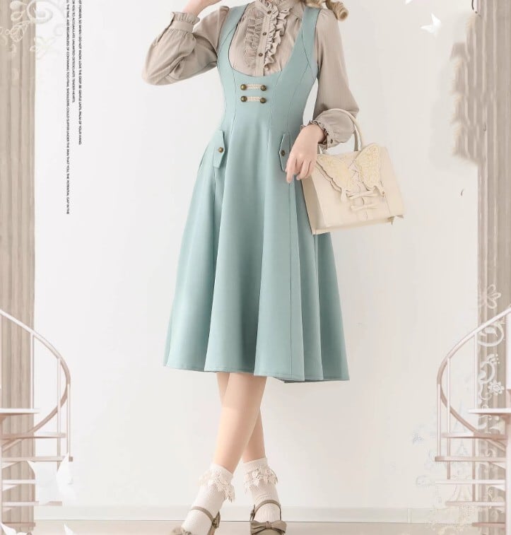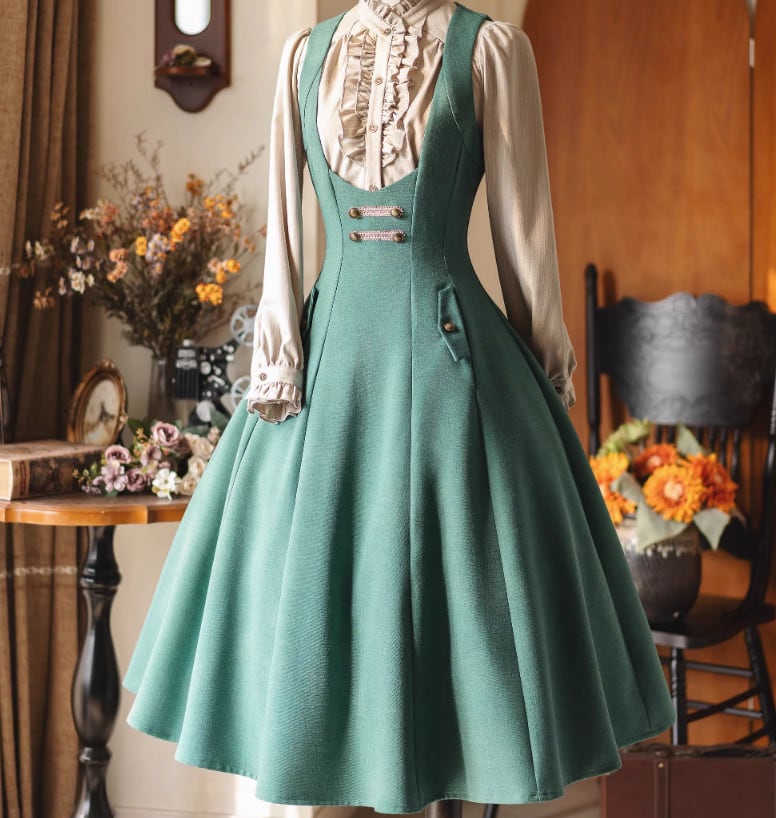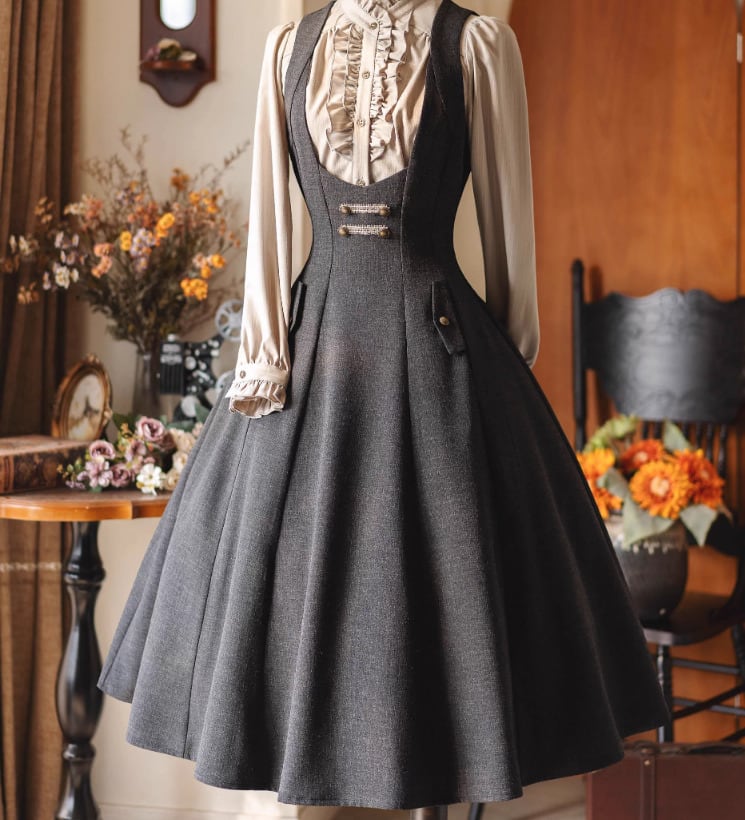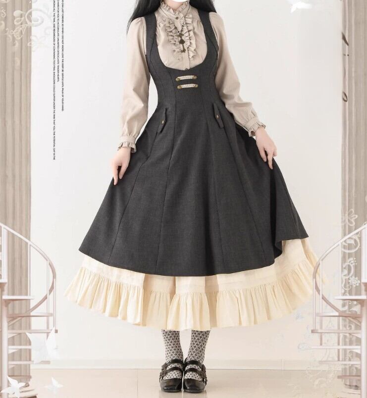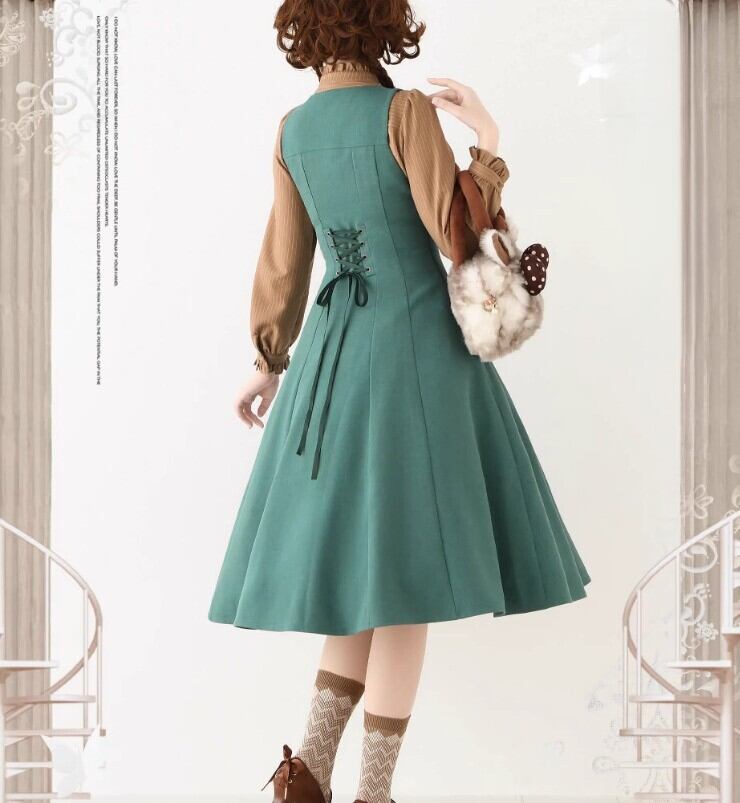 クラシカルロリータ クラロリ ジャンパースカート のみ 3色 膝丈 ひざ丈 ヴィンテージ エレガント 文学少女 英国風 上品 清楚 きれいめ レディース お茶会 デイリー
