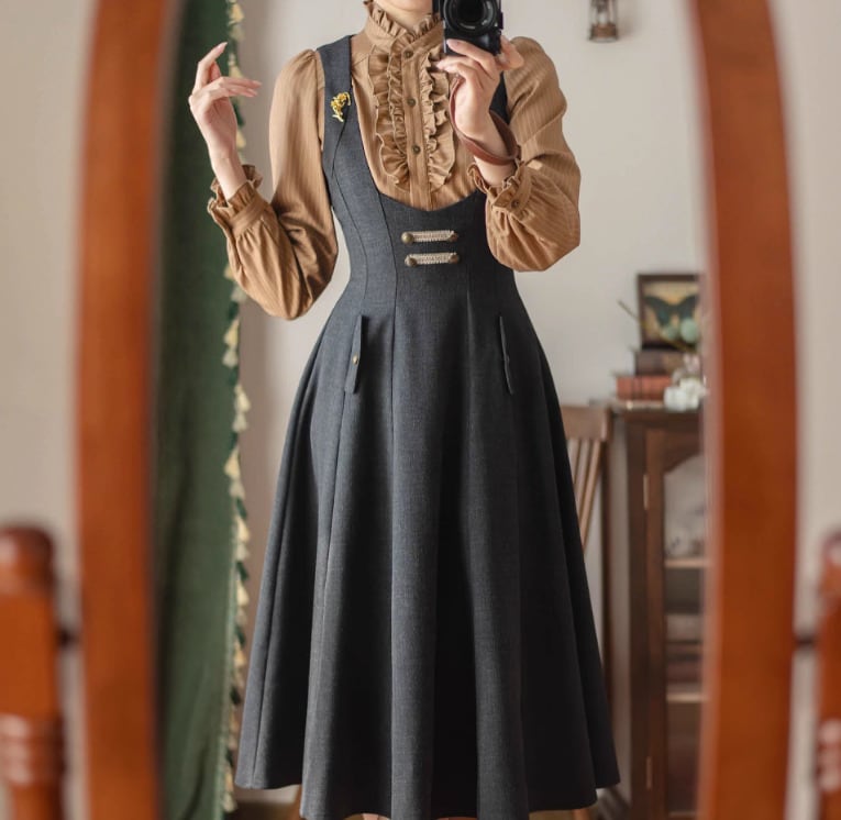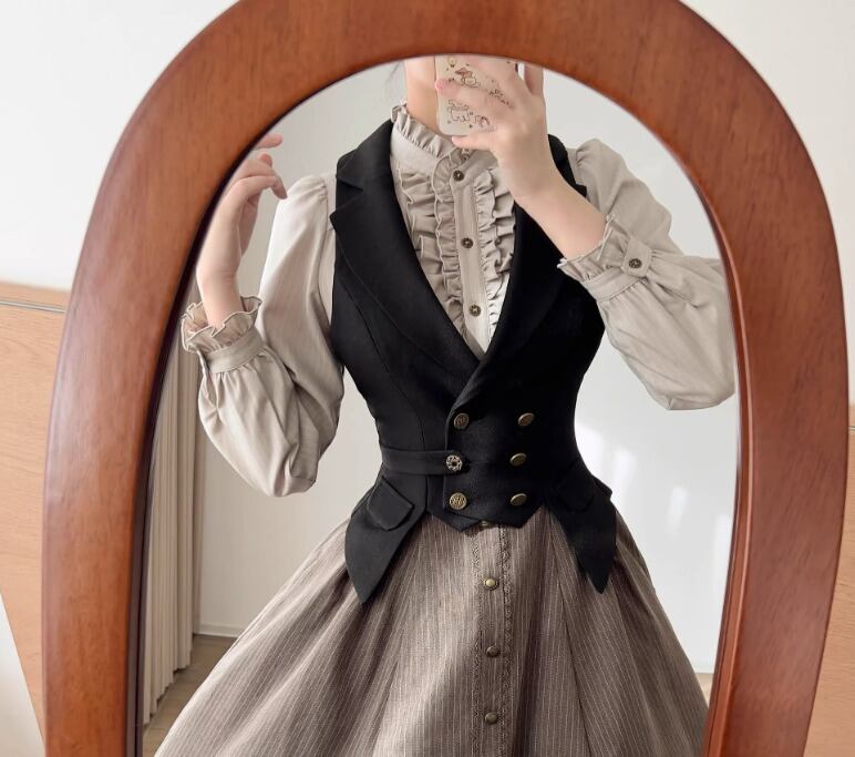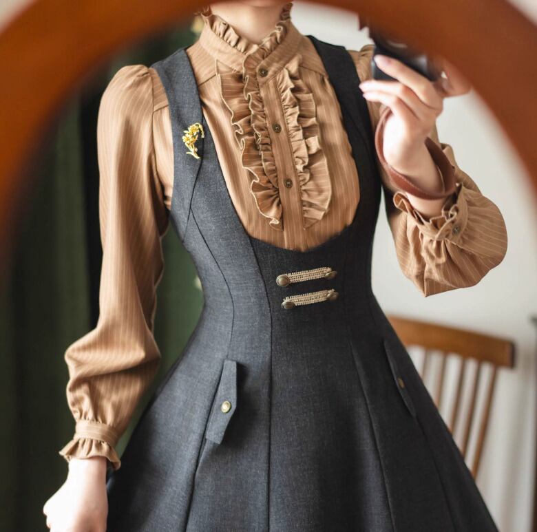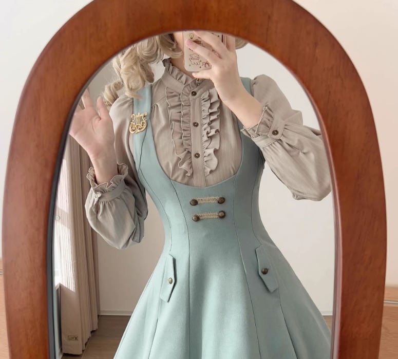 クラシカルロリータ クラロリ ブラウス のみ 2色 長袖 立ち襟 フリル ヴィンテージ エレガント 文学少女 英国風 上品 清楚 きれいめ レディース お茶会 デイリー
