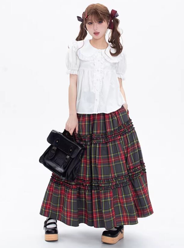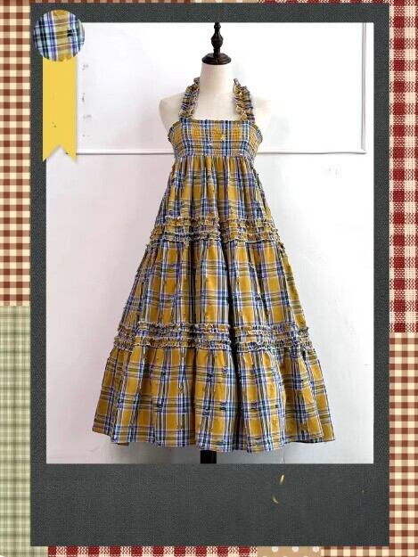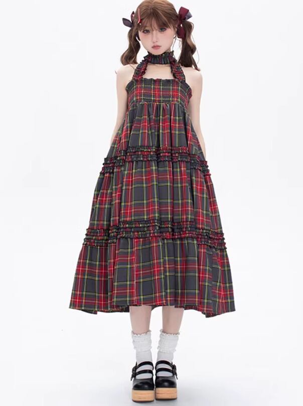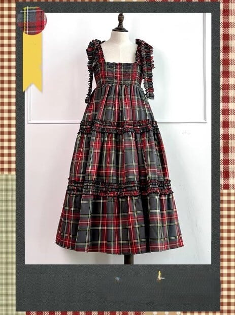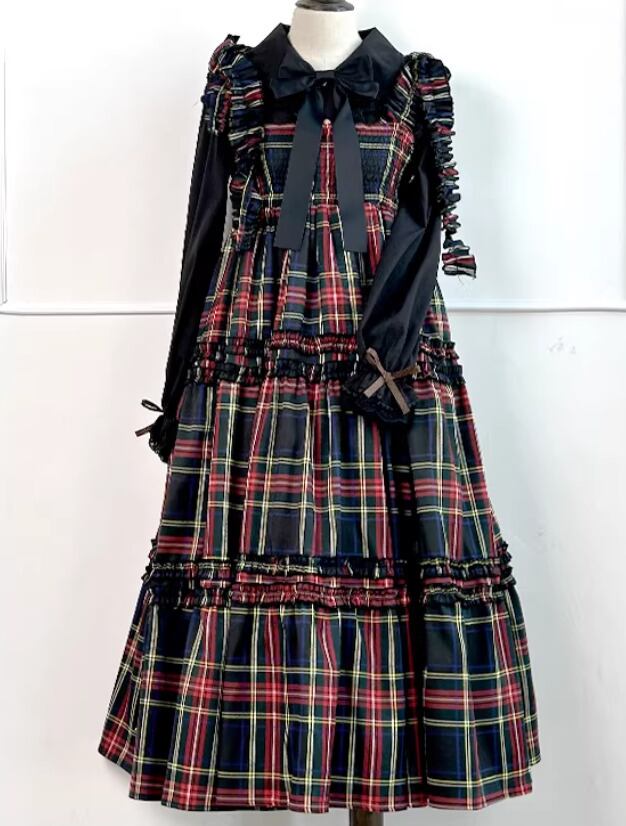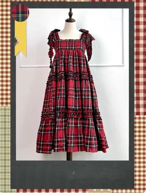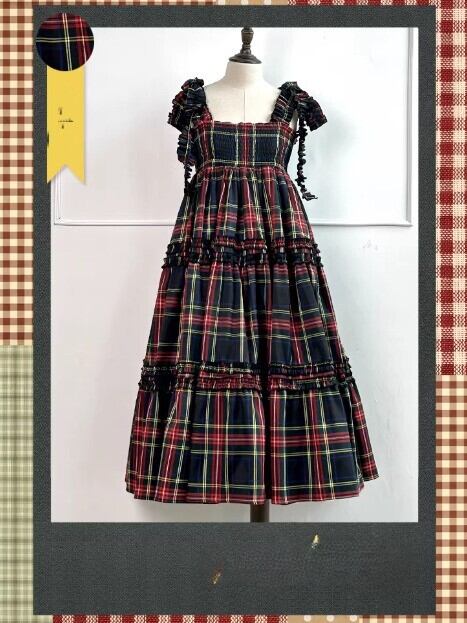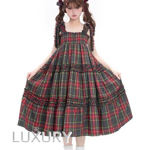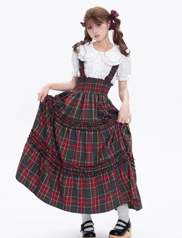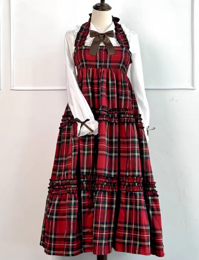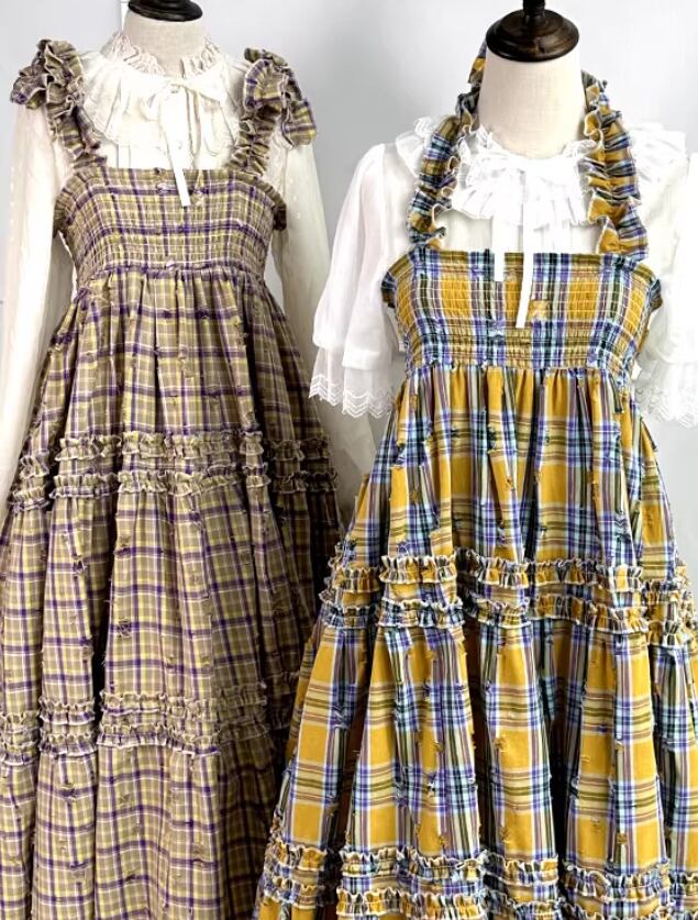 甘ロリ ジャンパースカート のみ 7色 チェック柄 ひざ下丈 ミモレ丈 レトロ 古風 原宿系 かわいい ガーリー レディースファッション お茶会 森 ピクニック 田園 デート