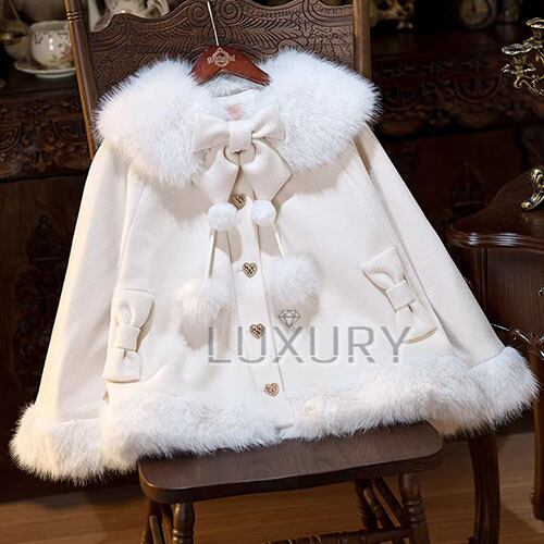 甘ロリ ケープ + リボンタイ + うさ耳 + ファー襟 + ポンポンしっぽ 5点セット お嬢様 ゆめかわ ゆるふわ ラブリー メルヘン あったか 暖かい 裏起毛 デート