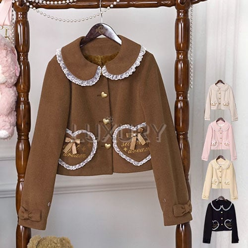 甘ロリ ショートコート のみ 5色 ハートボタン お嬢様 ゆめかわ ゆるふわ スウィート ガーリー ラブリー メルヘン 秋冬コーデ 普段着 普段使い デイリー デート
