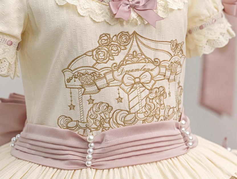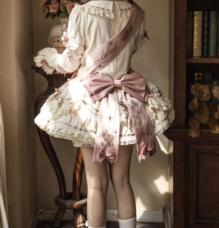 こちらは【ワンピース + リボン + 付け袖 + ドロワーズ 4点セット】の販売となりますので、ご注意ください。 サッシュは含まれておりません。