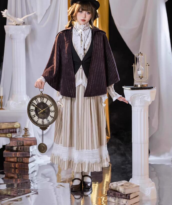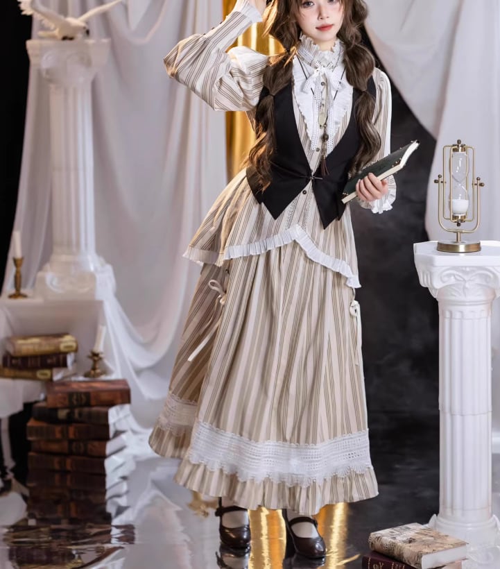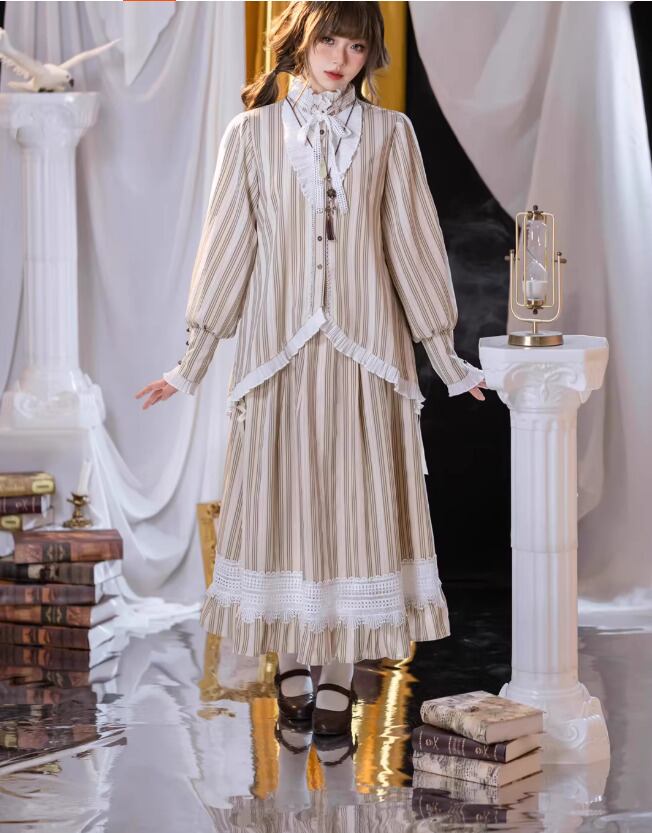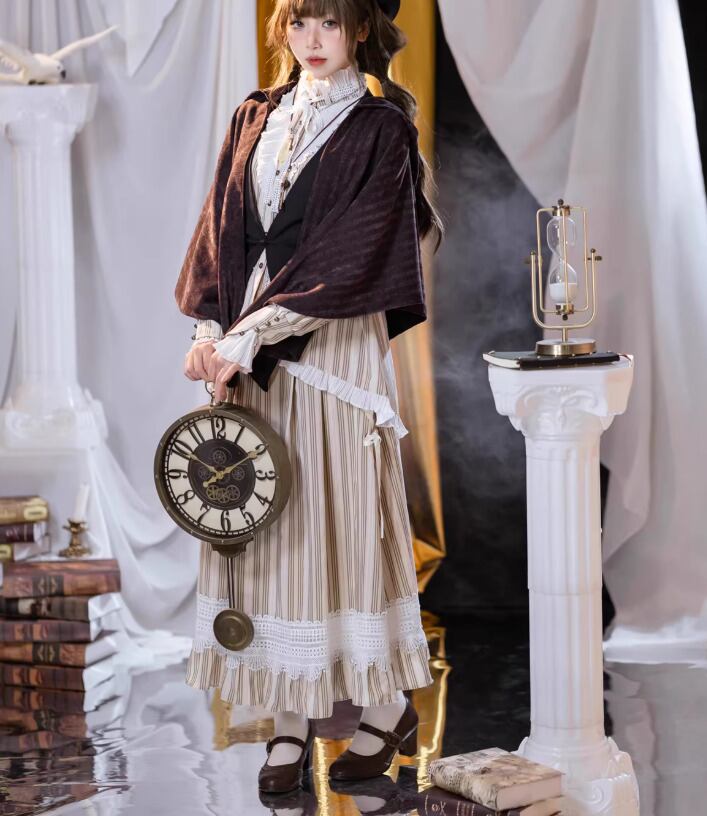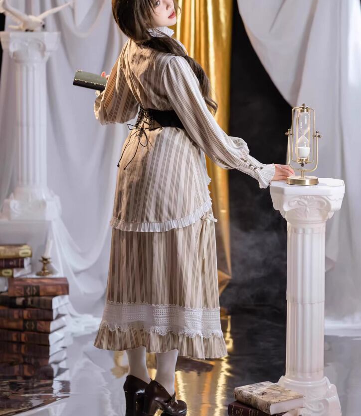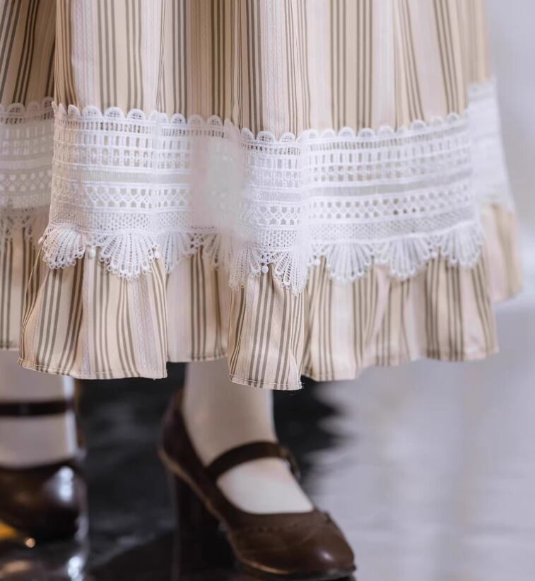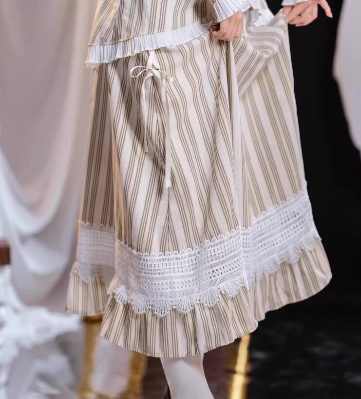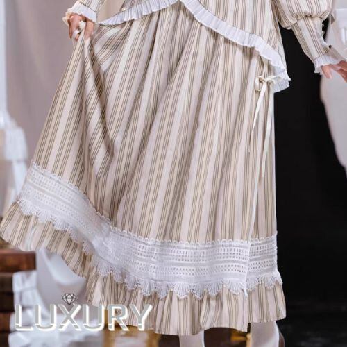 【5月発送】クラシカルロリータ クラロリ スチームパンク steampunk スカート のみ ストライプ ゆったり 楽ちん ロング丈 レトロ ガーリー 春夏コーデ 薄手 お茶会