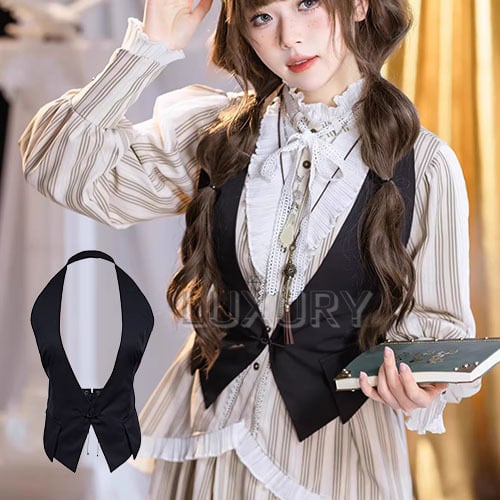 【5月発送】クラシカルロリータ クラロリ スチームパンク steampunk ベスト のみ シングルボタン Vネック ホルターネック スリムジレ ヴィンテージ風 ユニセックス お茶会