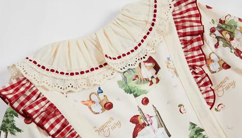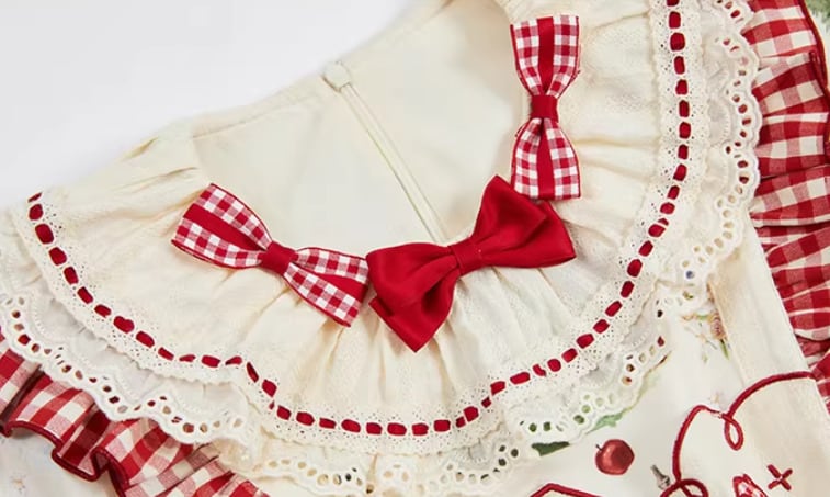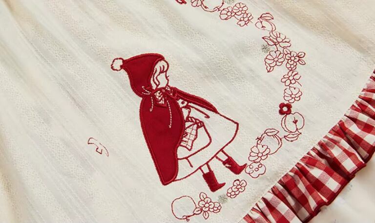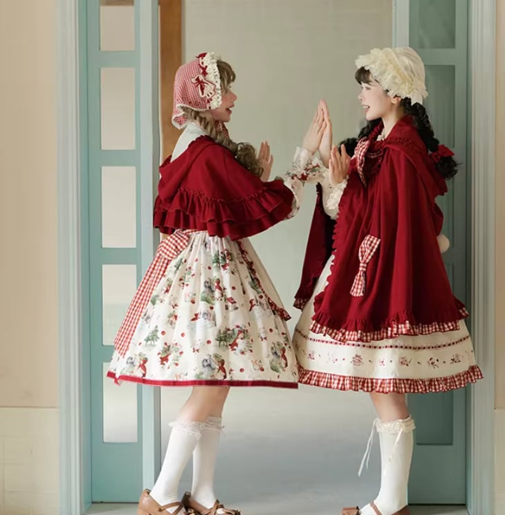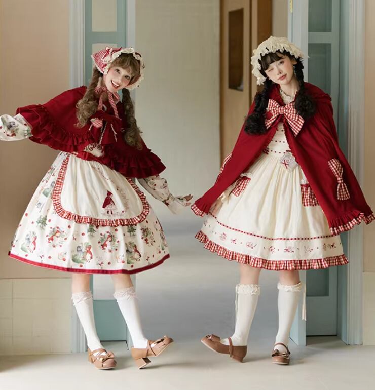 エプロン付きのデザインで、クラシカルな赤ずきんスタイルが