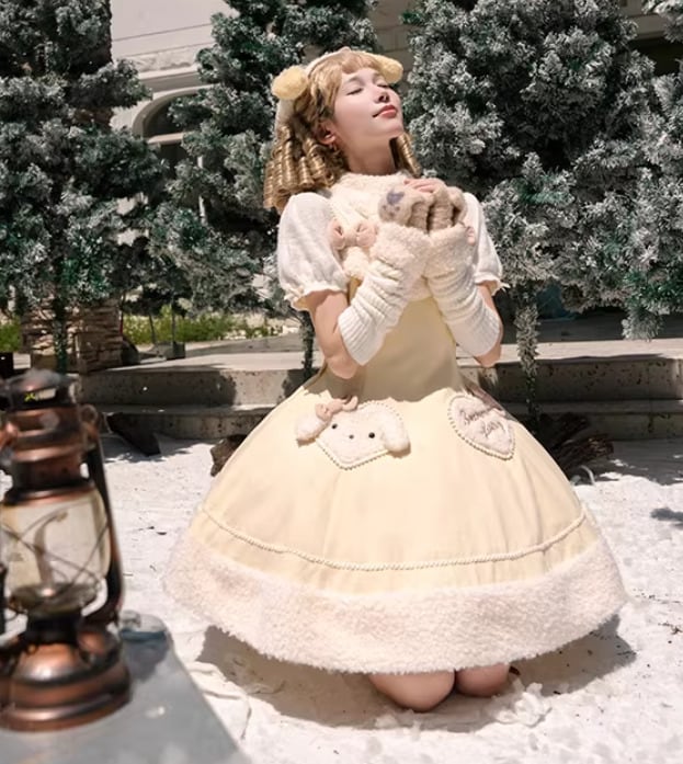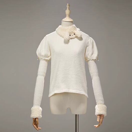 甘ロリ ニットインナー のみ 付け袖 パピー 子犬モチーフ わんちゃん もこもこ 半袖 妖精 華やか ゆめかわ ゆるふわ ラブリー メルヘン 秋冬コーデ 撮影
