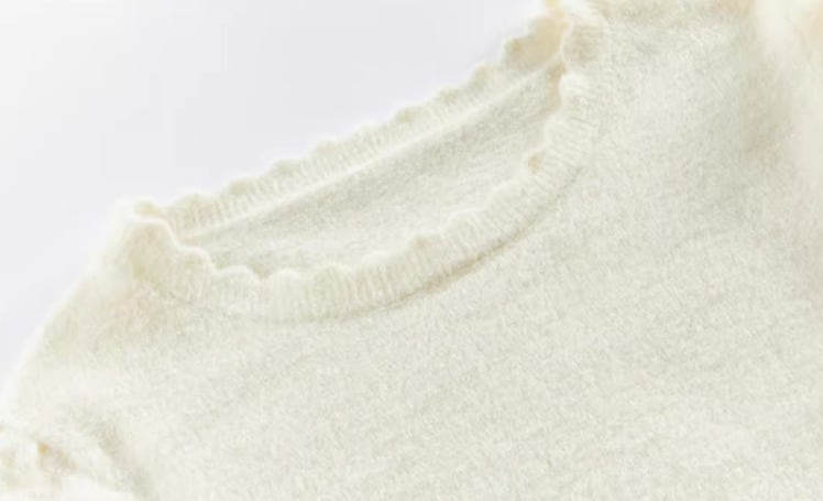 このニットインナーは、もこもこの付け袖が特徴的で、