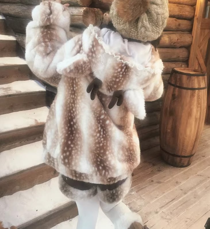 このコートは、かわいらしいバンビのデザインが特徴で、