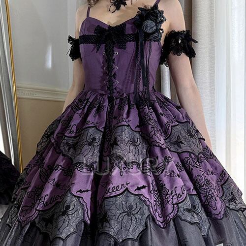 ゴスロリファッション ゴスロリ ジャンパースカート のみ スパイダー ティアード 膝丈 ひざ丈 ミディアム 暗黒系 幻想的 ゴージャス レディースファッション撮影 舞台 撮影用