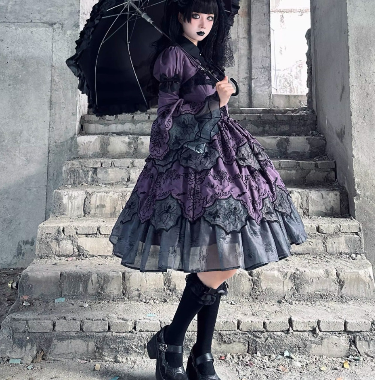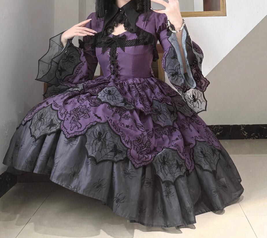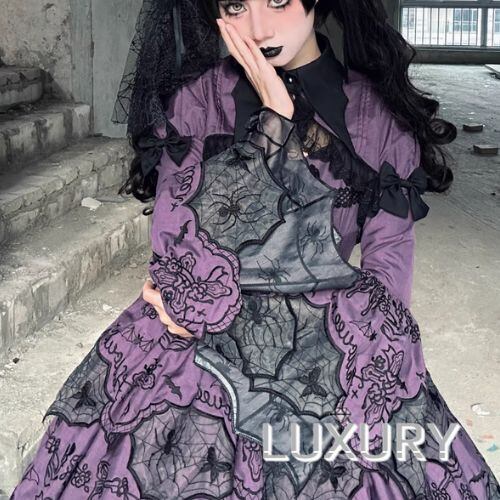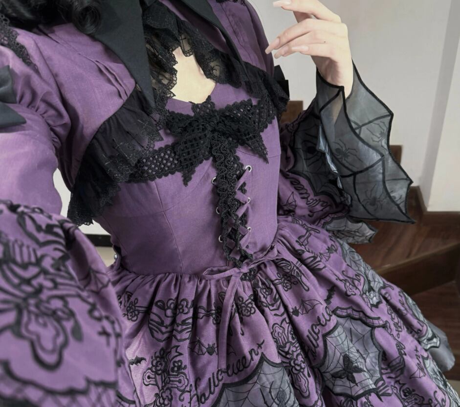 ゴスロリファッション ゴスロリ ボレロ のみ 刺繍 スパイダー 蜘蛛の巣 長袖 暗黒系 幻想的 ハード ゴージャス レディースファッション 撮影 舞台 撮影用