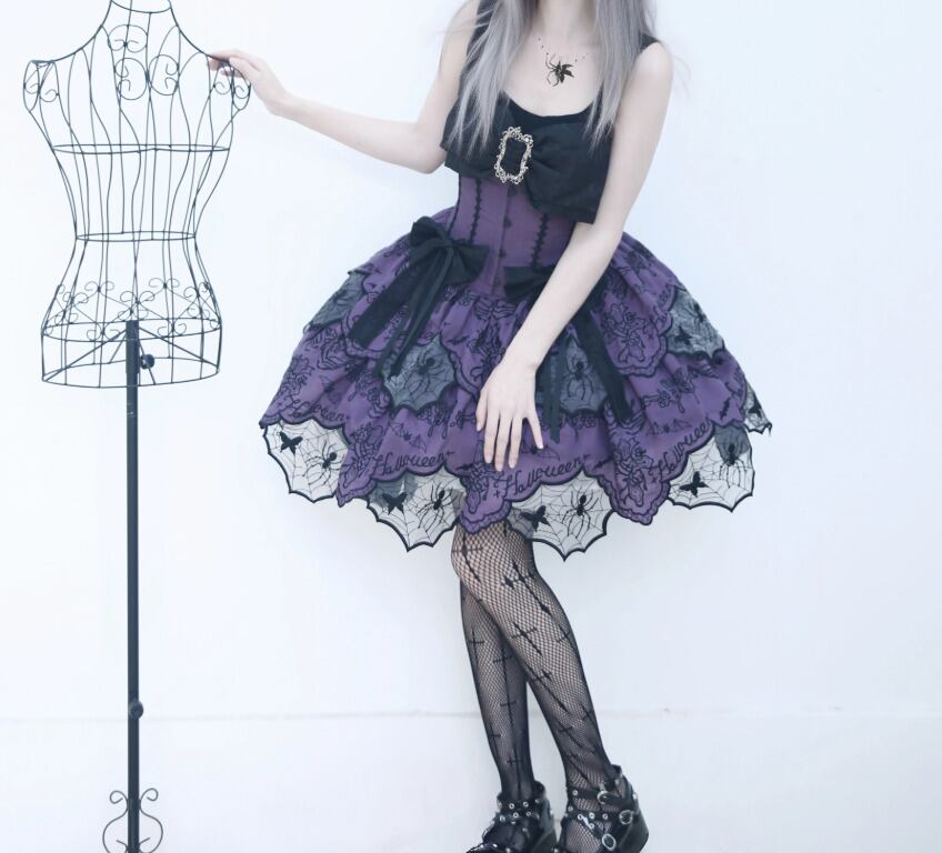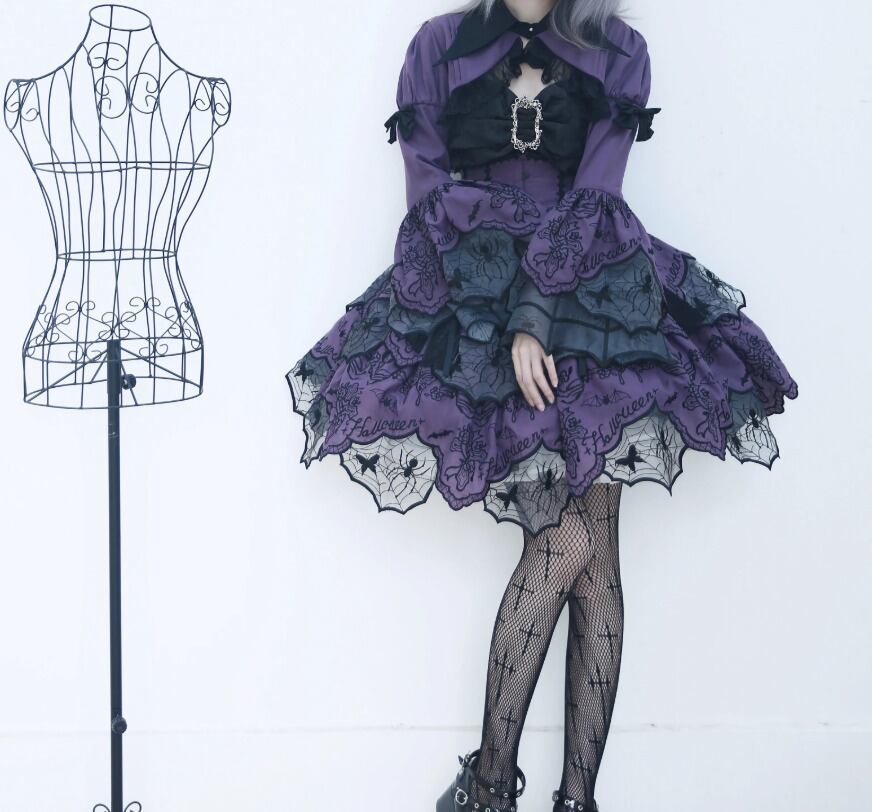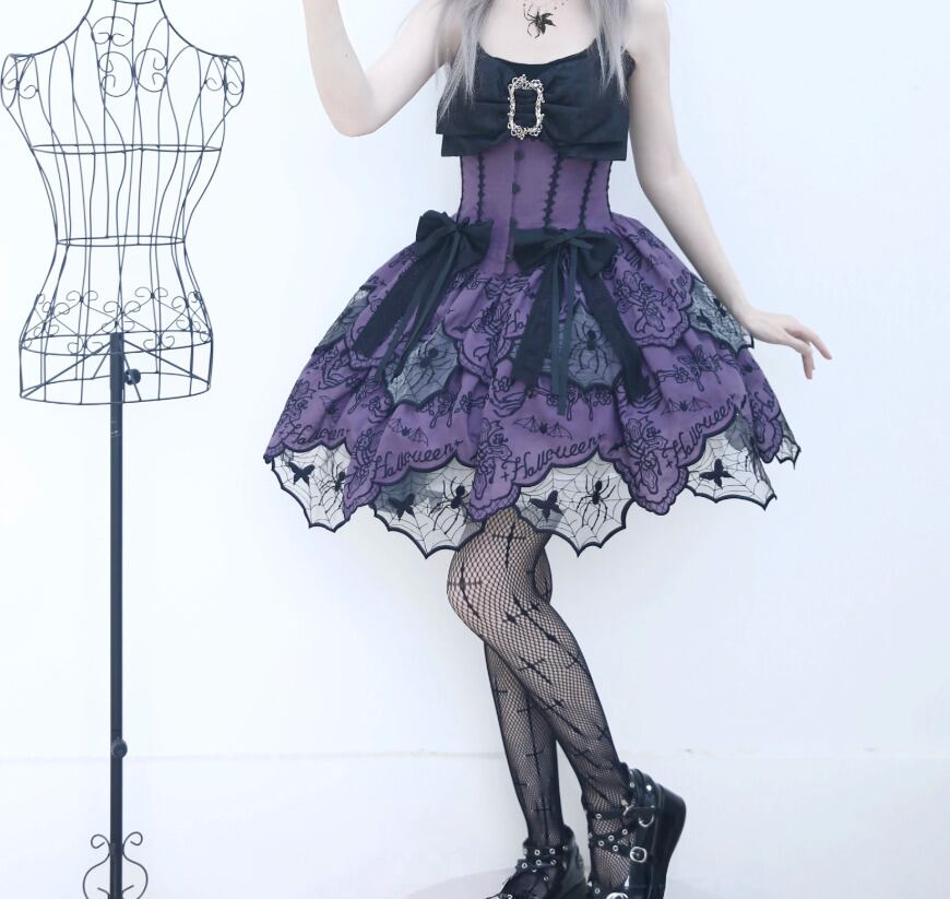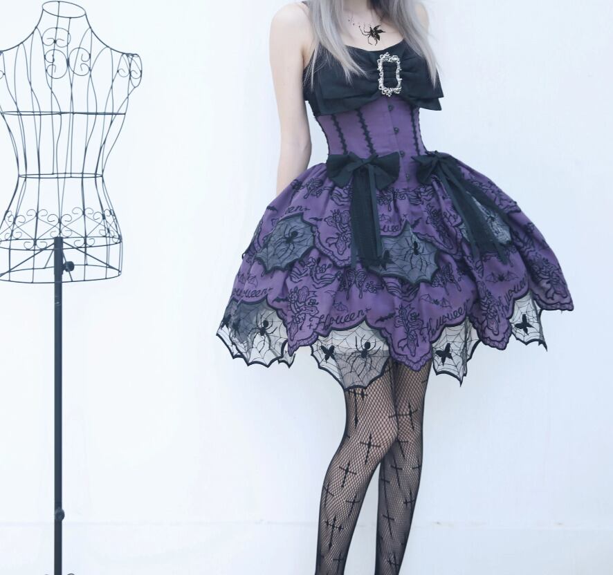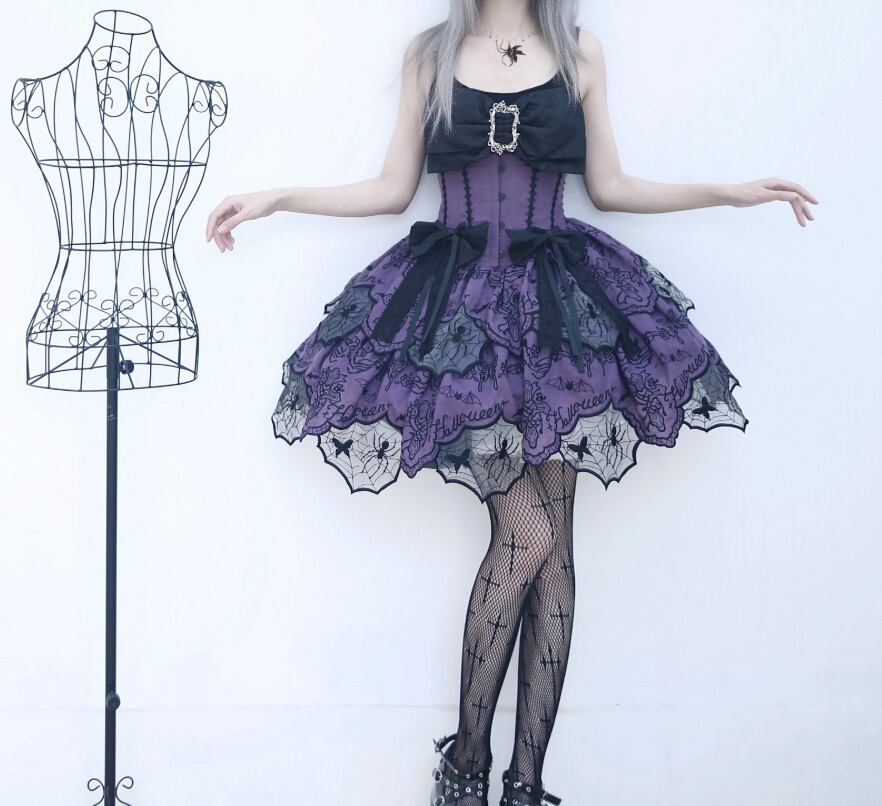ゴスロリファッション ゴスロリ スカート のみ ダブルレイヤー ミニ丈 ショート丈 膝上 スパイダー 蜘蛛の巣 暗黒系 幻想的 ハード ゴージャス レディース 撮影 舞台