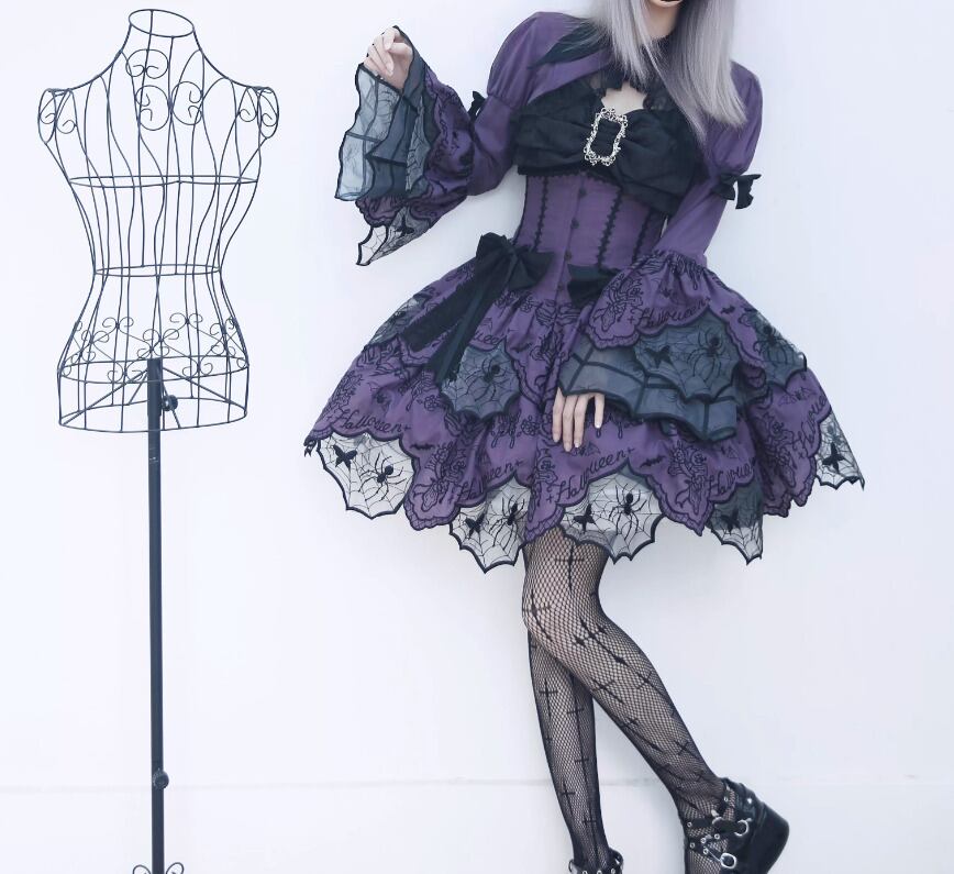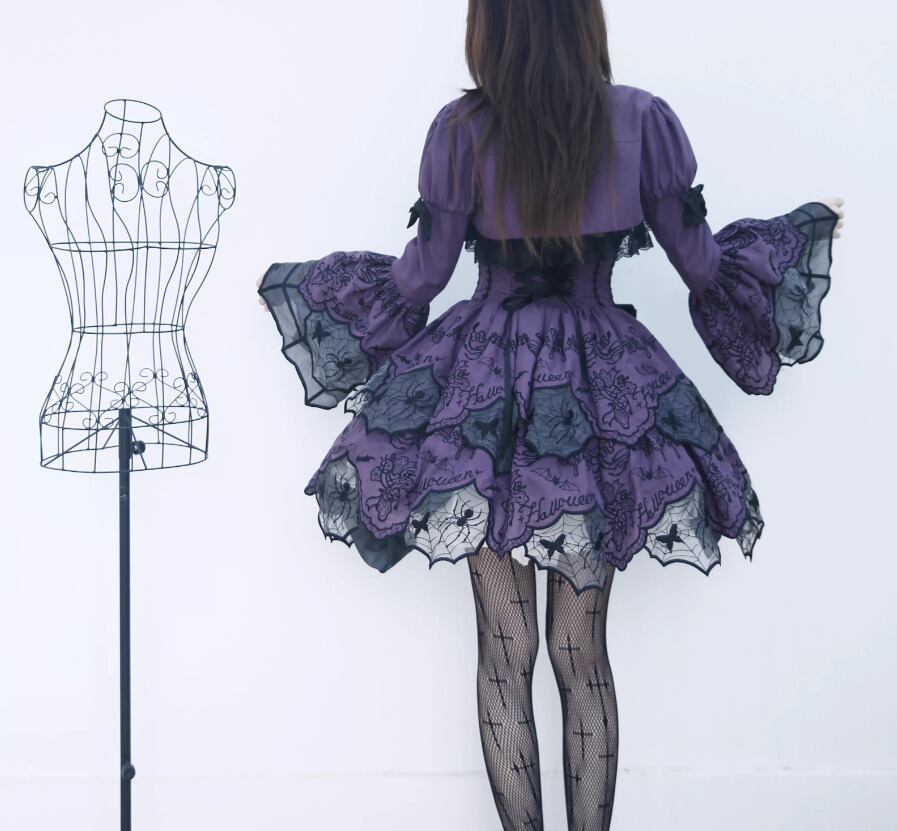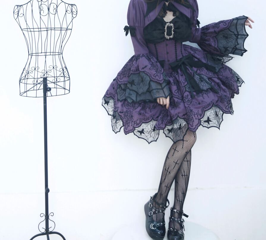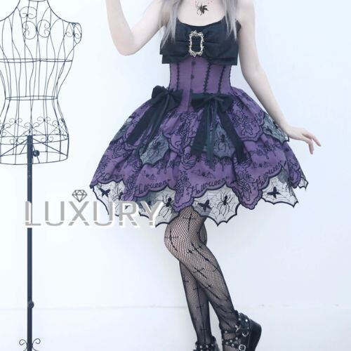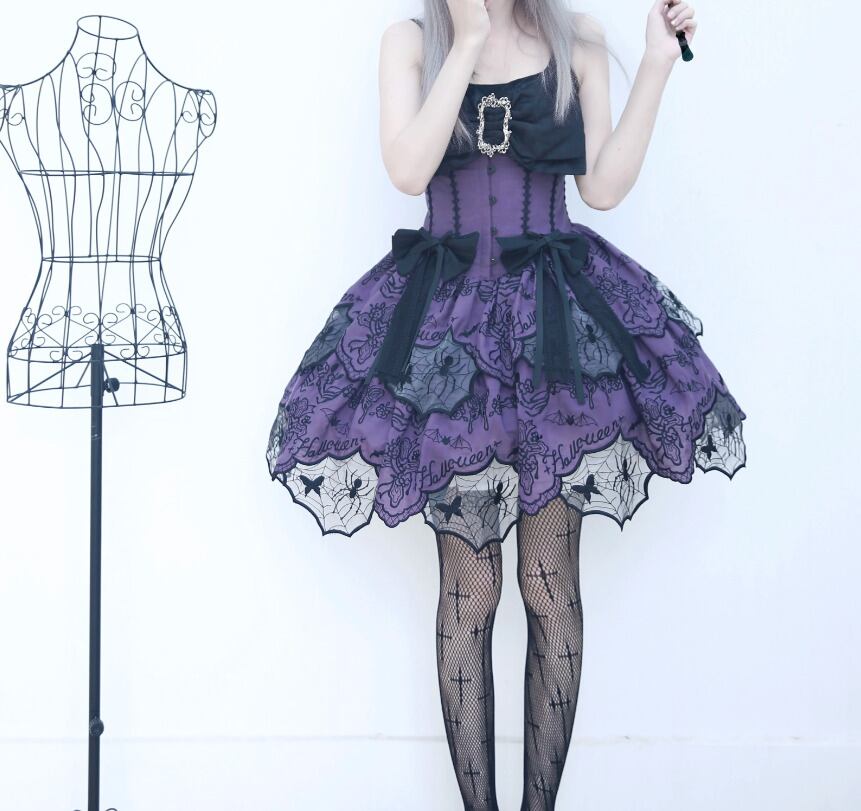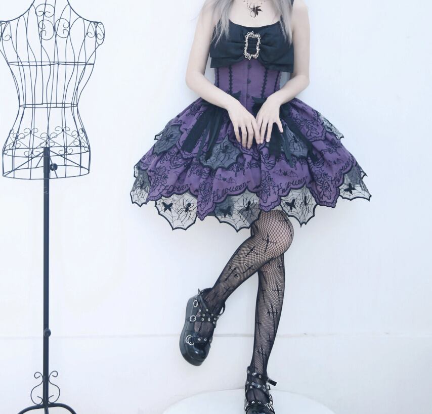 ゴスロリファッション ゴスロリ スカート のみ ダブルレイヤー ミニ丈 ショート丈 膝上 スパイダー 蜘蛛の巣 暗黒系 幻想的 ハード ゴージャス レディース 撮影 舞台
