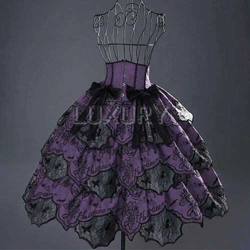 ゴスロリファッション ゴスロリ スカート のみ ロング丈 スパイダー 蜘蛛の巣 貴婦人 貴族 暗黒系 幻想的 ハード ゴージャス レディース 撮影 舞台 撮影用
