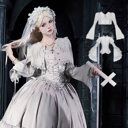 【納期4月中旬】ゴスロリファッション ゴスロリ 姫袖トップス + ショートジャケット 2点セット ドールスタイル エレガント 神話 幻想的 レディースファッション 撮影 舞台
