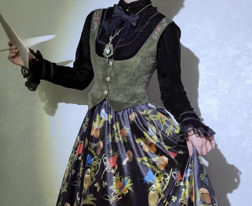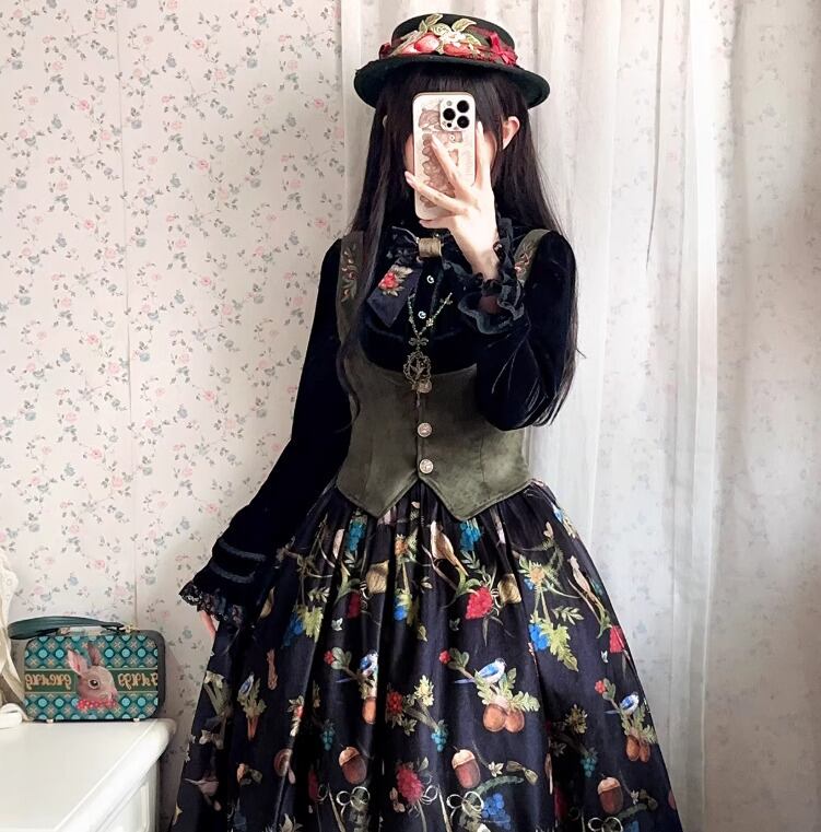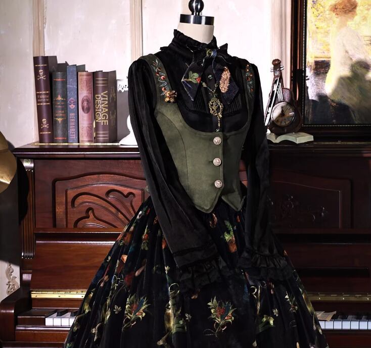 クラシカルロリータ クラロリ ベスト のみ 刺繍 ヴィンテージ アンティーク レトロ 古風 森ガール エレガント 上品 清楚 秋冬コーデ お茶会 お呼ばれ パーティー