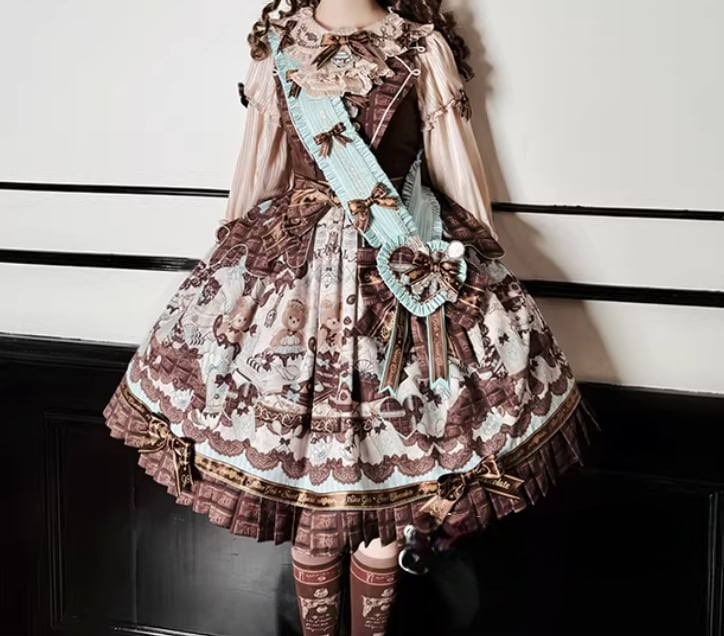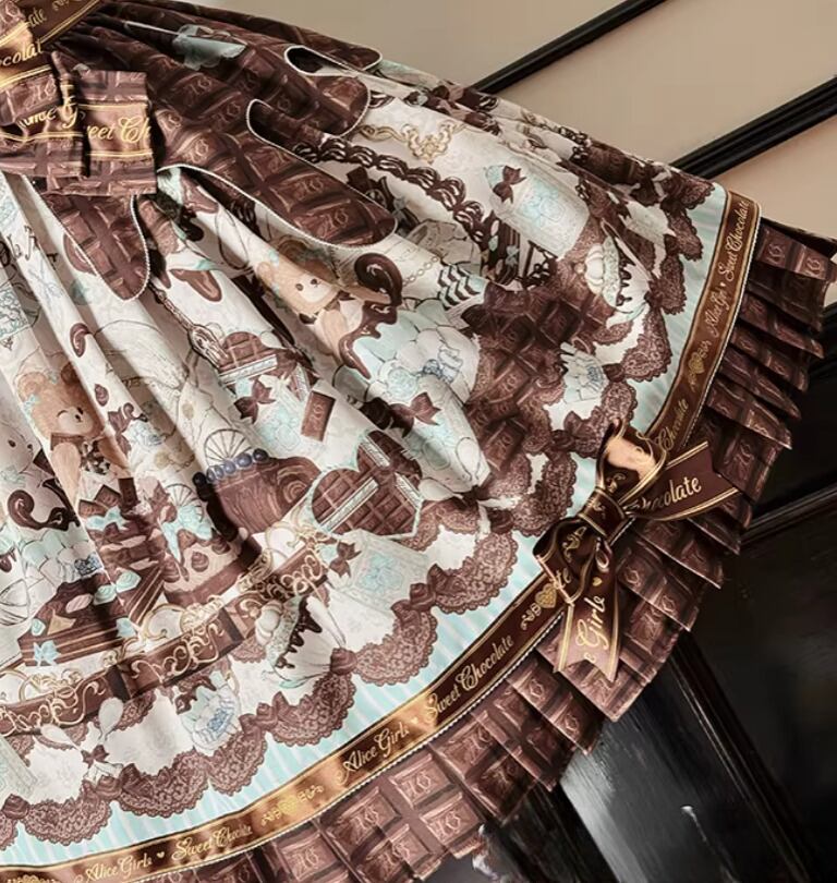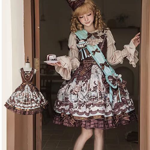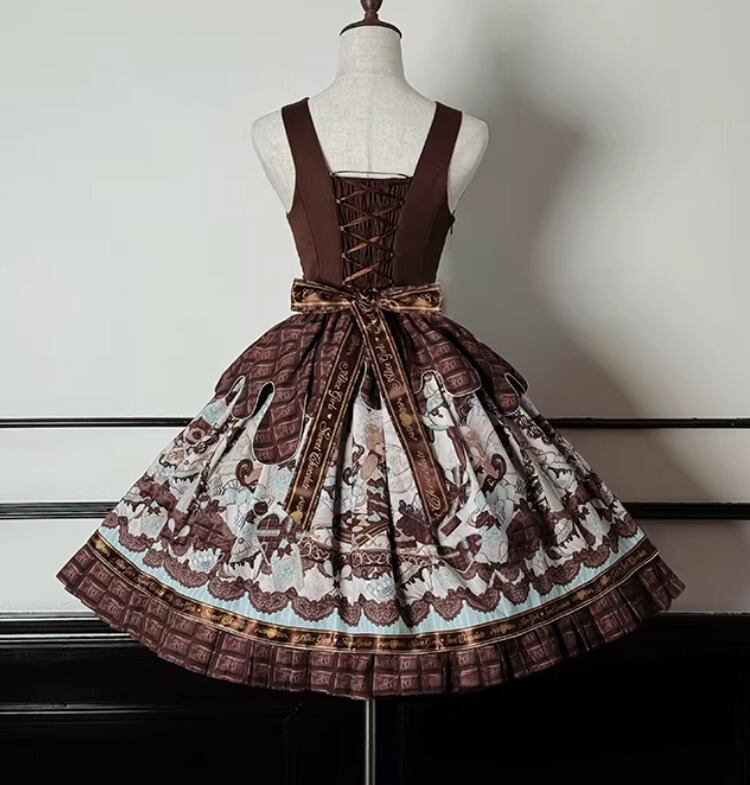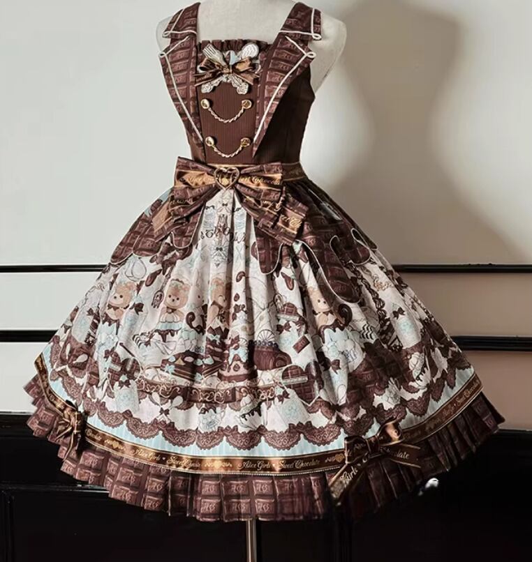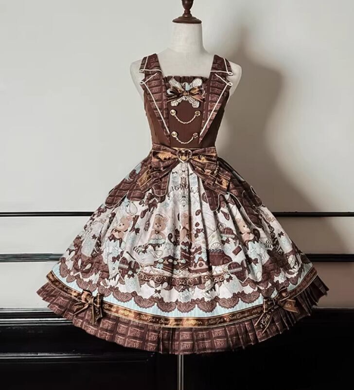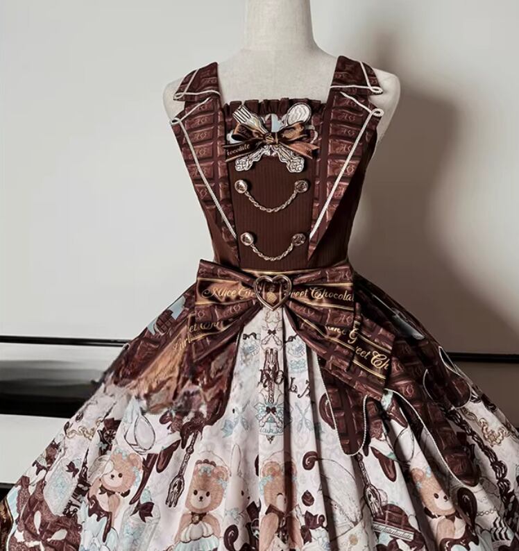 【納期6月上旬】甘ロリ ジャンパースカート のみ くまさん クマちゃん クマさん チョコレート チョコ プリント ショート丈 膝上 童話風 ガーリー レディース イベント