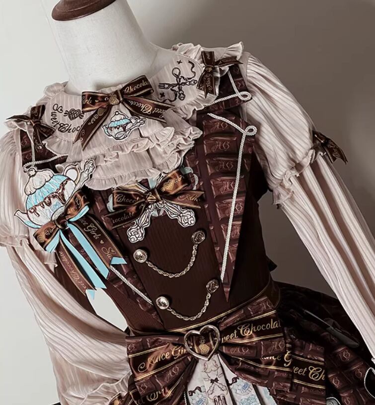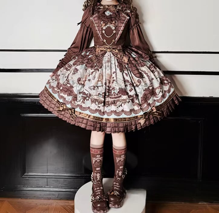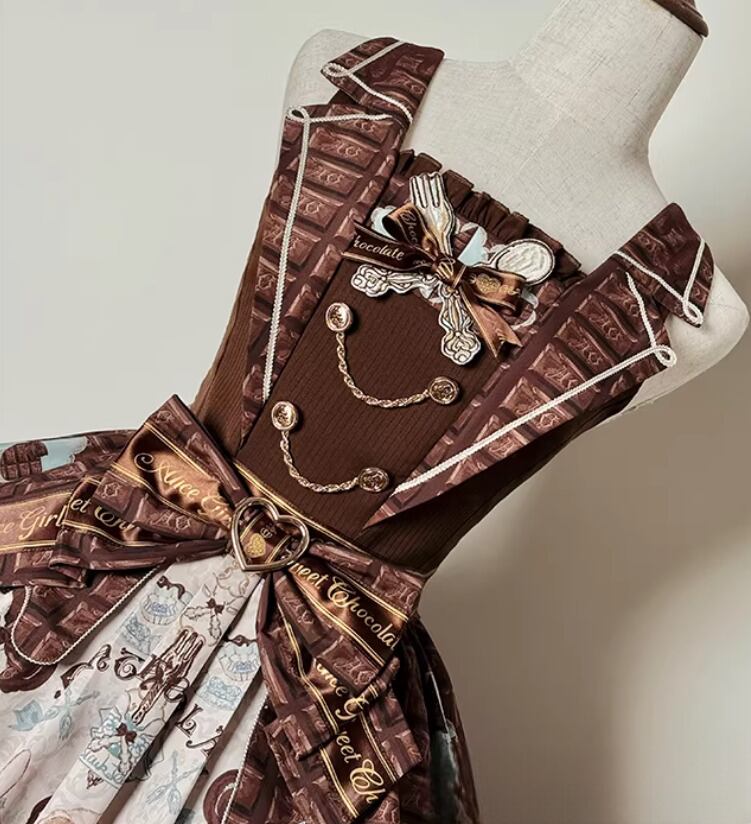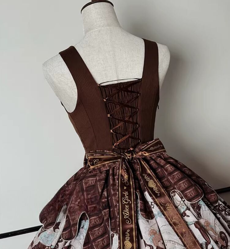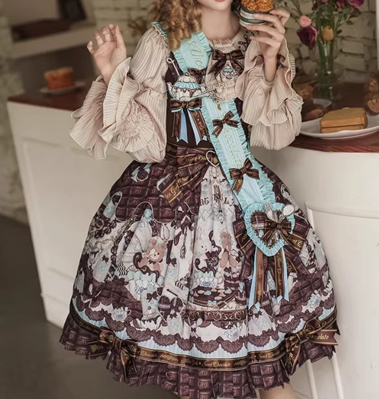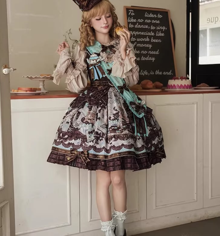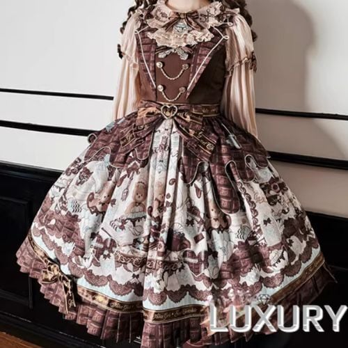 【納期6月上旬】甘ロリ ジャンパースカート のみ くまさん クマちゃん クマさん チョコレート チョコ プリント ショート丈 膝上 童話風 ガーリー レディース イベント
