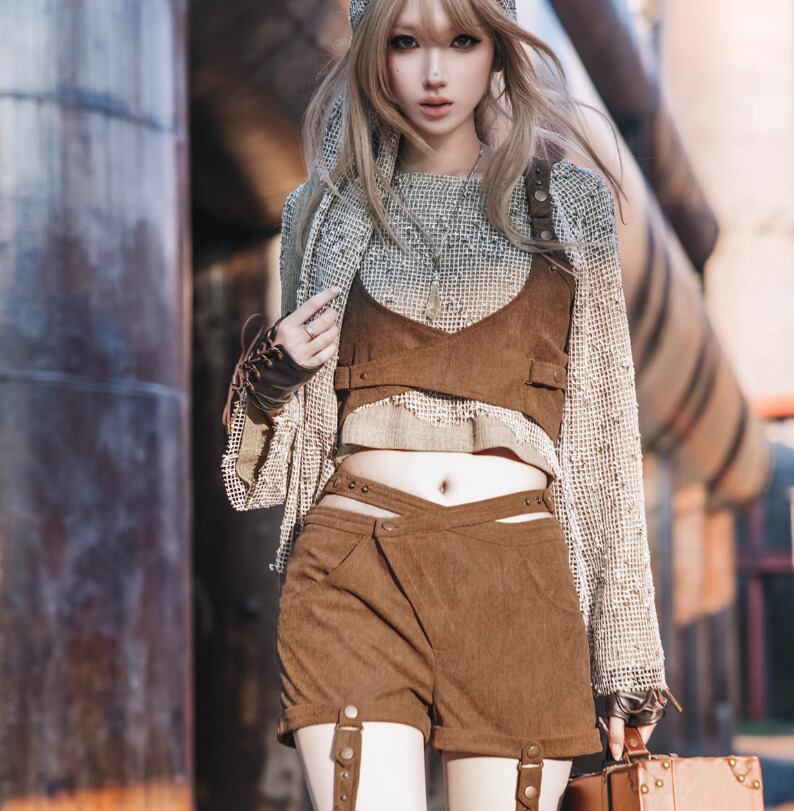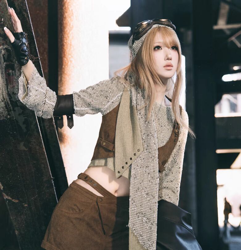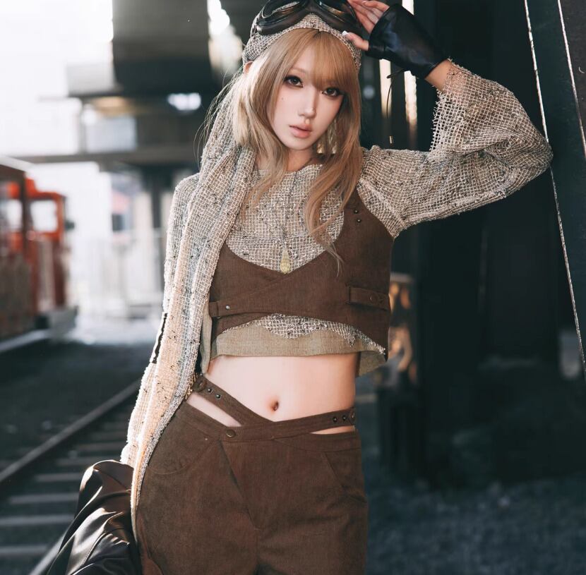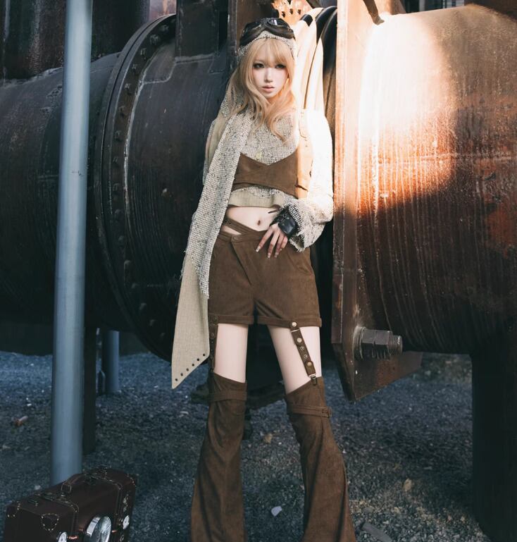スチームパンク steampunk ベスト のみ 重ね着風 レイヤード コーデュロイ サブカル ストリート ヴィンテージ アンティーク クール レディース イベント 舞台 撮影用