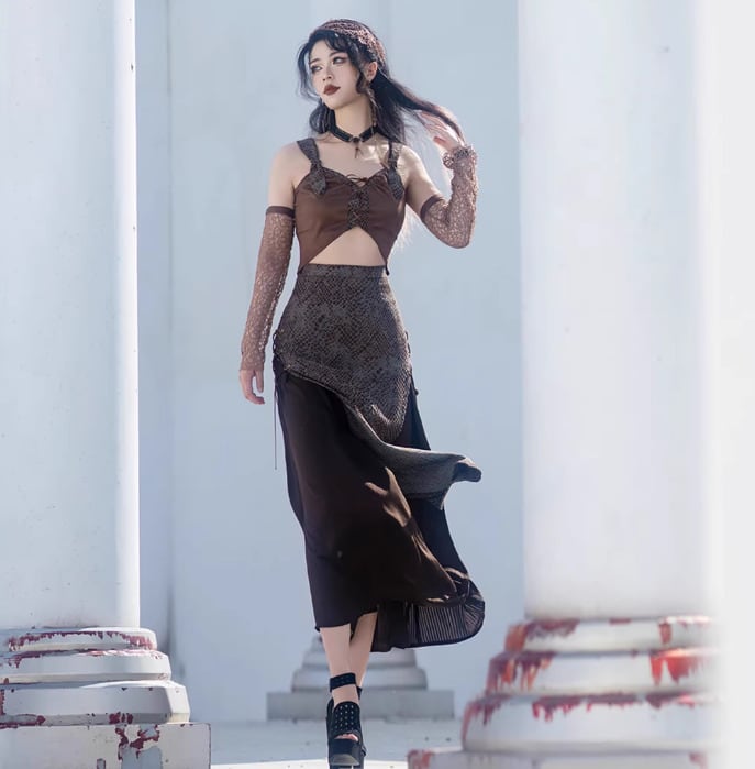スチームパンク steampunk キャミソール + ケープ 2点セット スエード調 ボヘミアン サブカル ストリート ヴィンテージ クール レディース イベント 舞台 撮影用