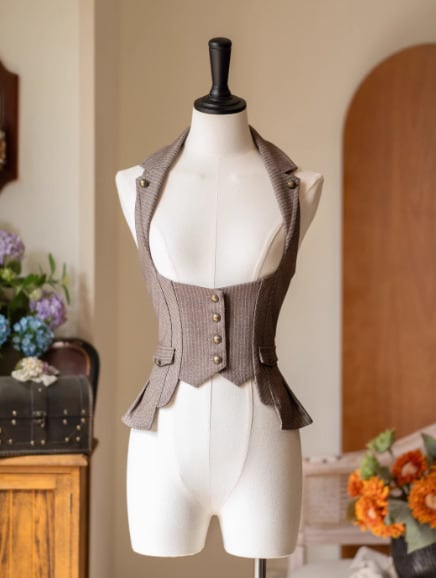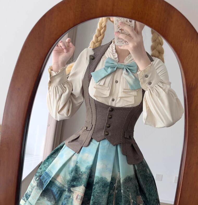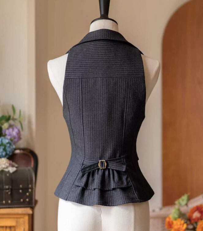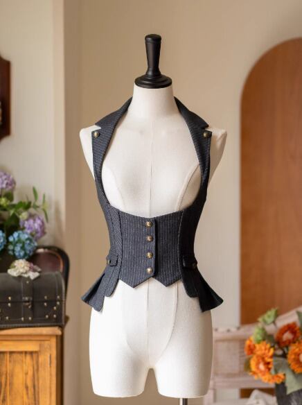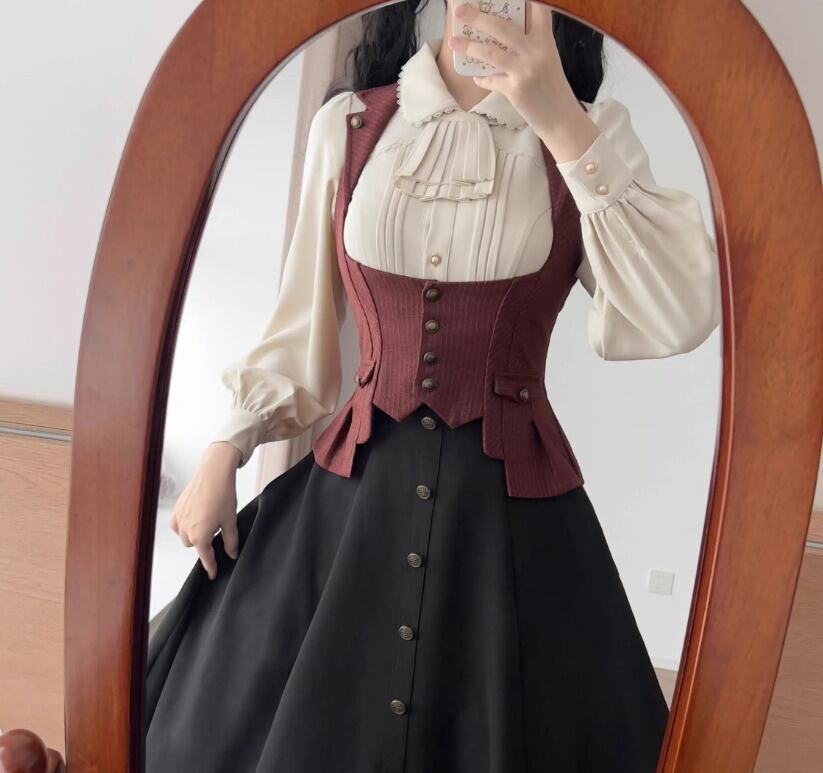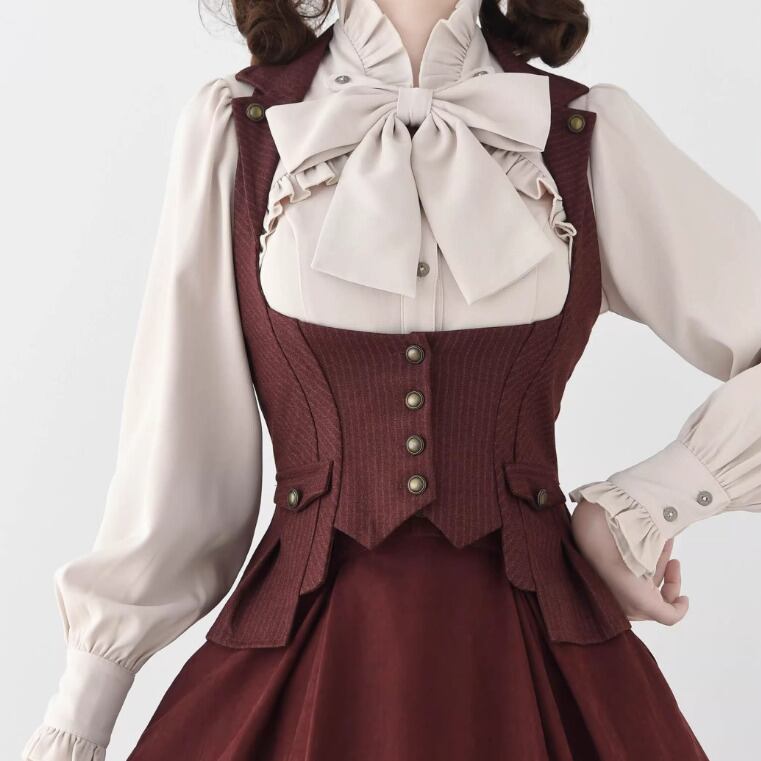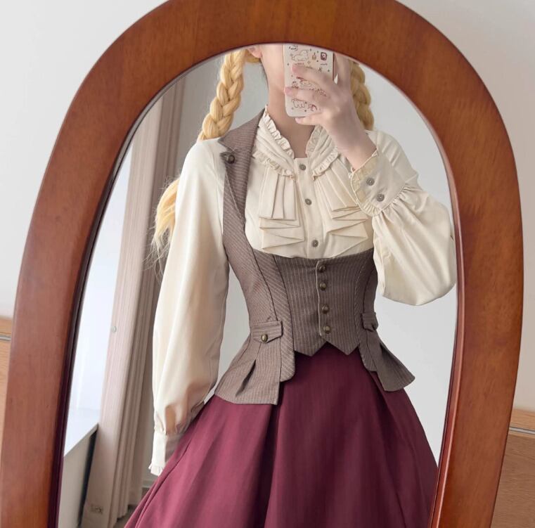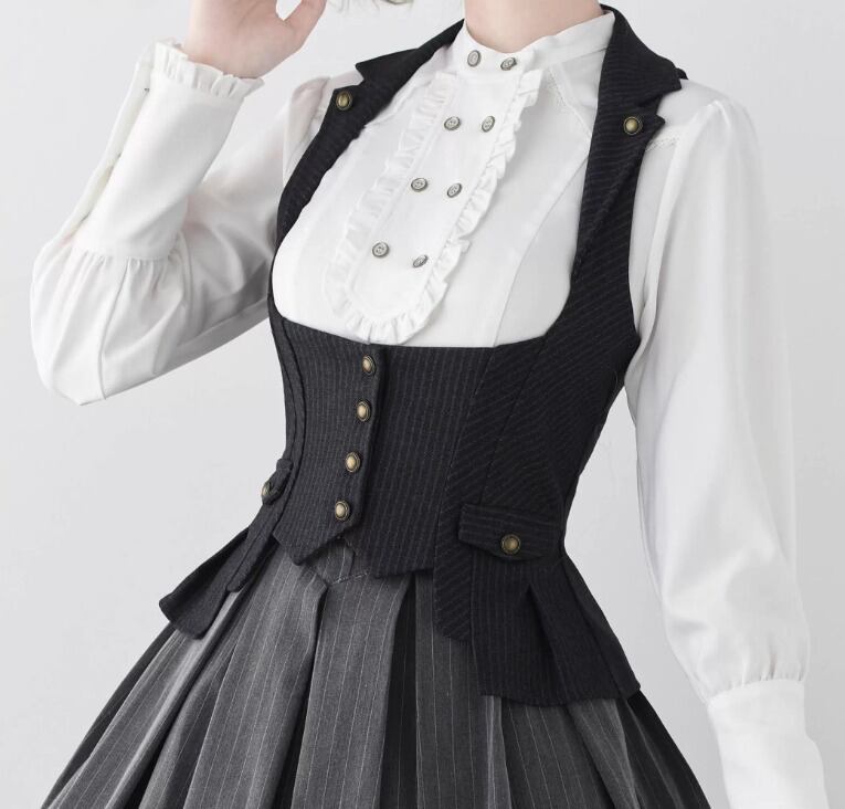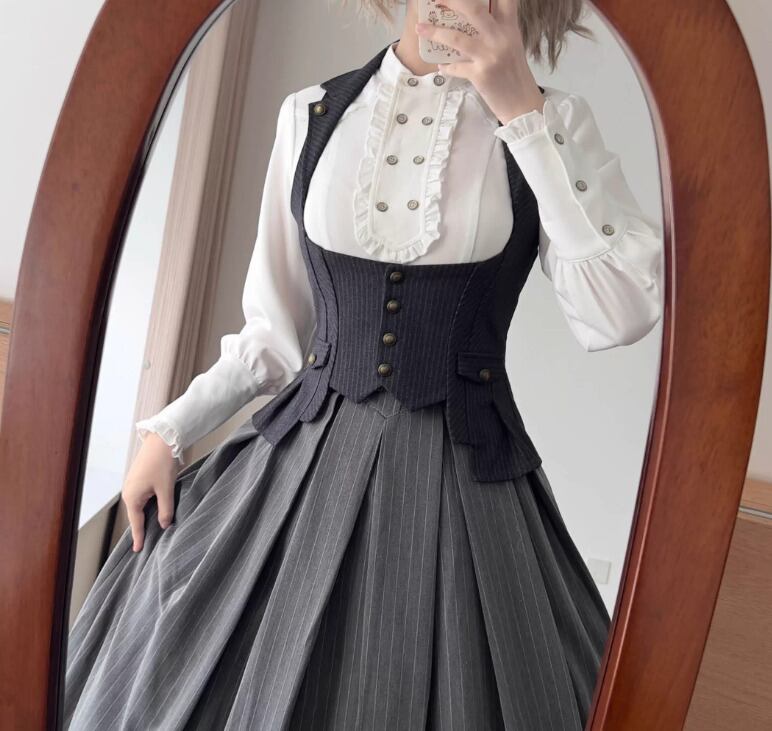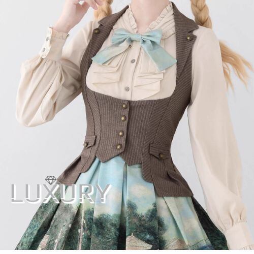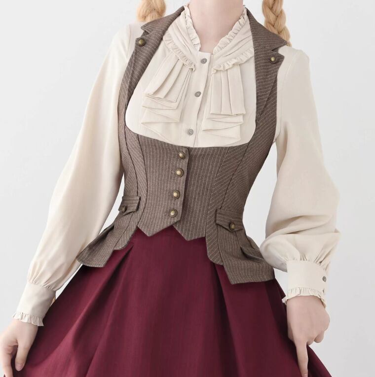クラシカルロリータ クラロリ ベスト のみ 3色 ストライプ柄 森ガール ヴィンテージ アンティーク ナチュラル エレガント 春秋コーデ お茶会 お呼ばれ パーティー