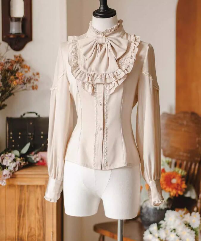 クラシカルロリータ クラロリ ブラウス のみ 長袖 立ち襟 森ガール ヴィンテージ 貴婦人 貴族 アンティーク ナチュラル エレガント 春秋コーデ お茶会 お呼ばれ パーティー