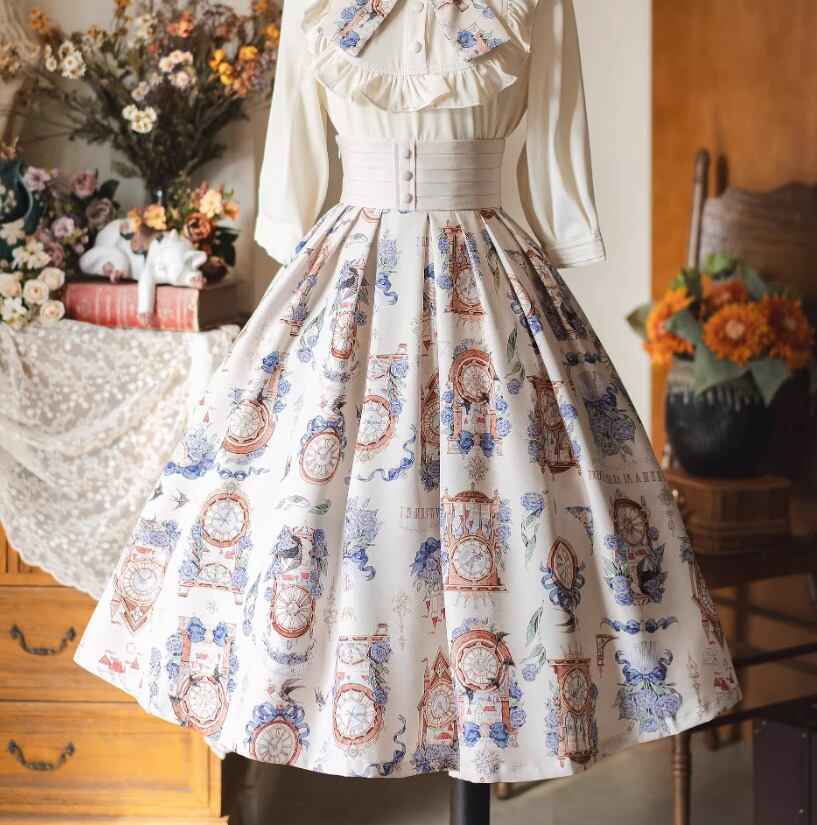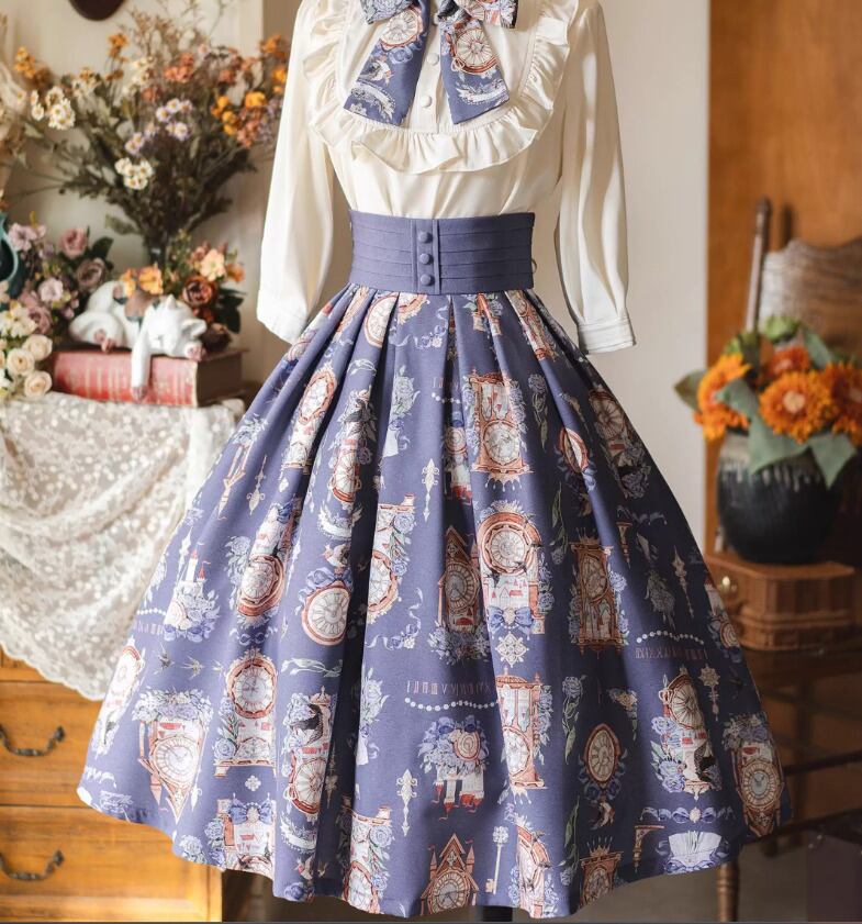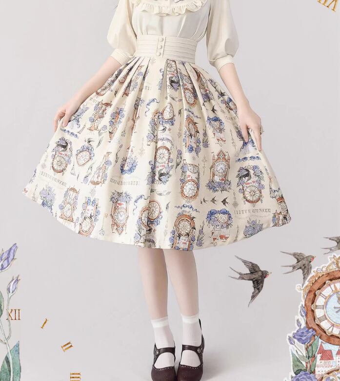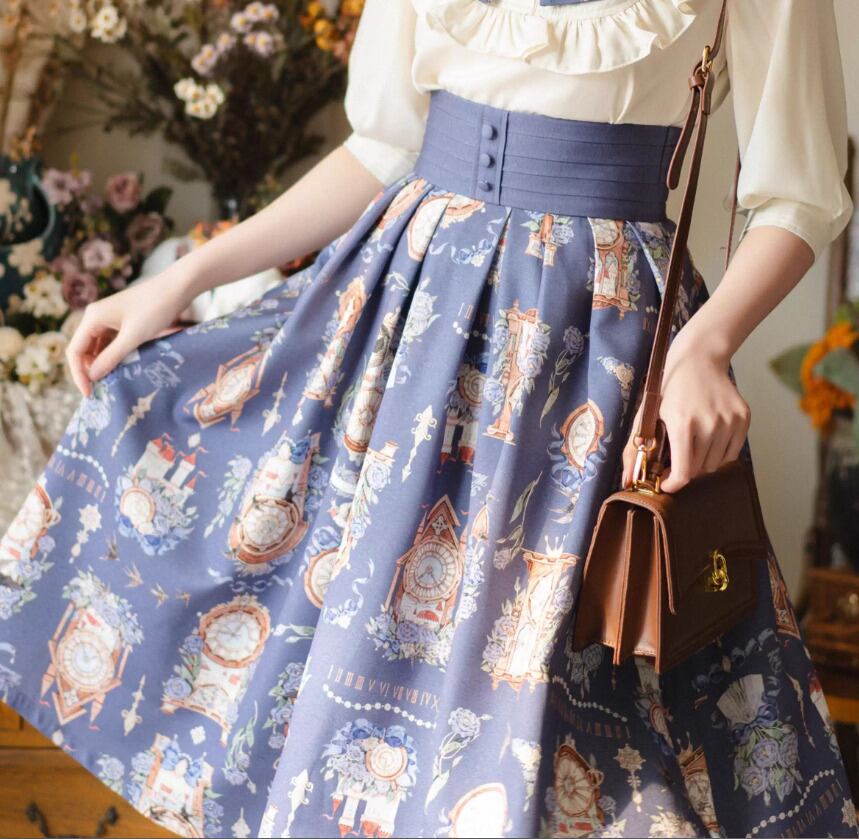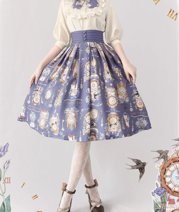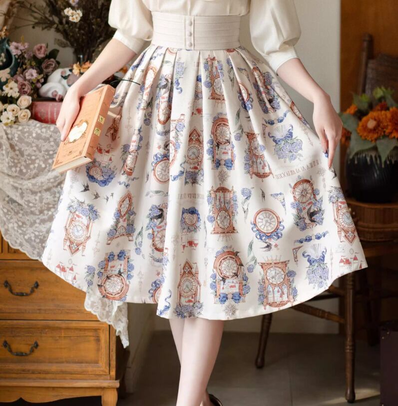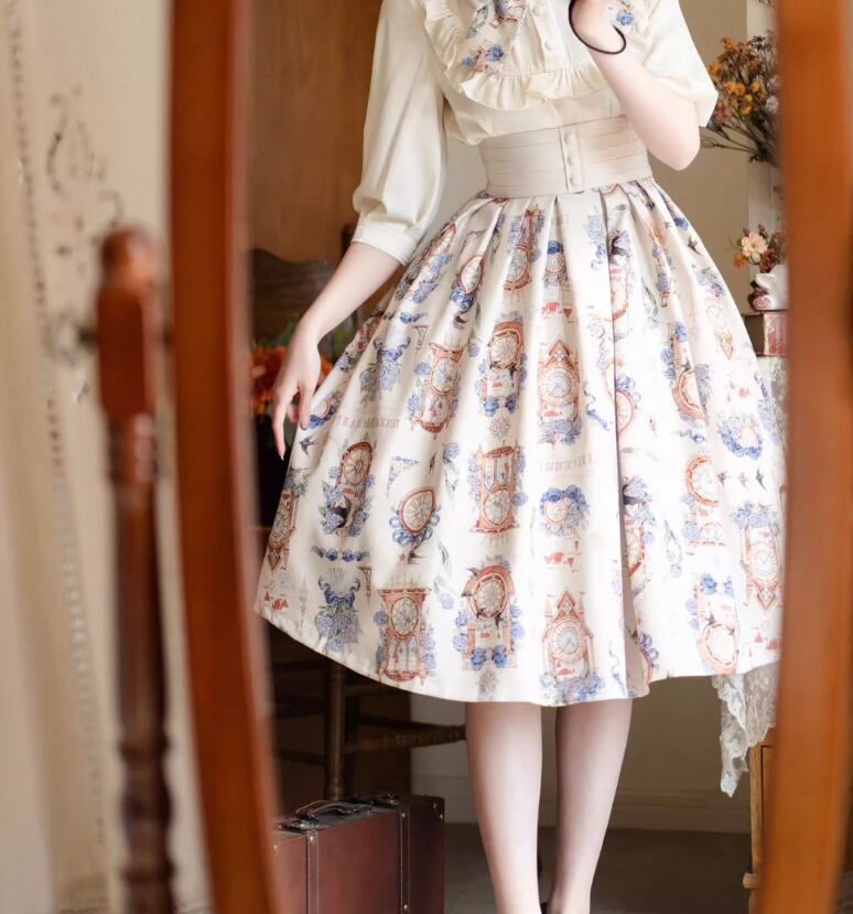 クラシカルロリータ クラロリ スカート のみ 3色 プリント 膝丈 ひざ丈 ミディアム Aライン 森ガール ヴィンテージ フレンチクラシカル エレガント 春夏秋コーデ お茶会