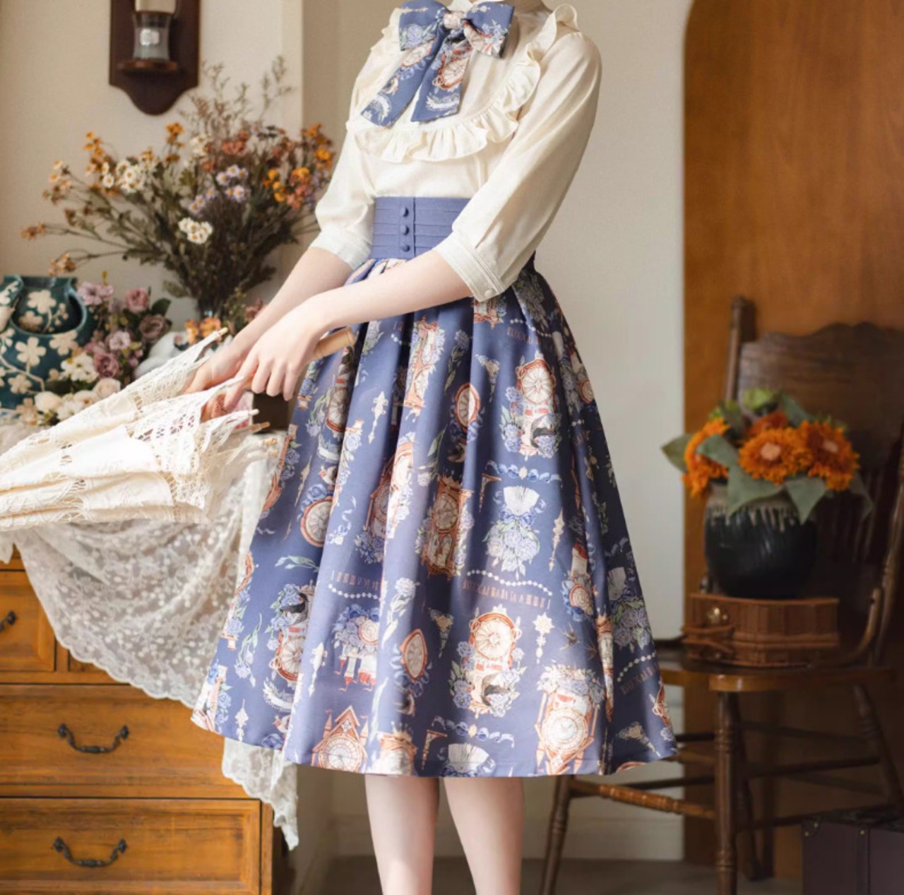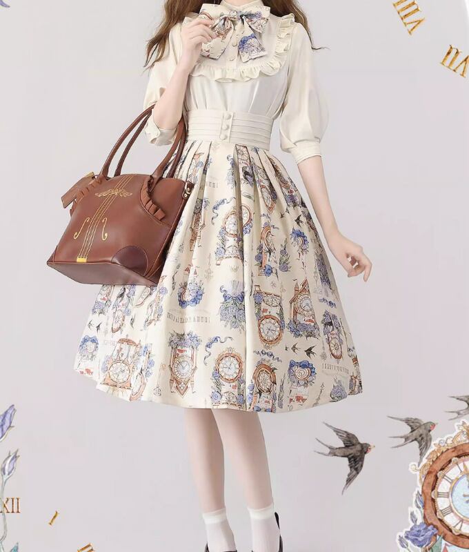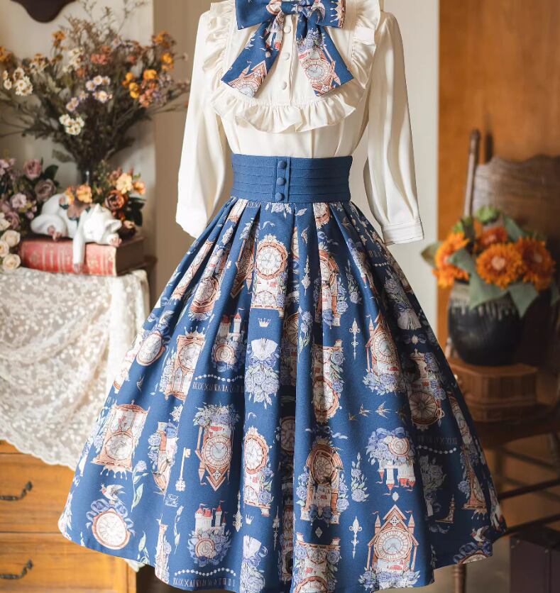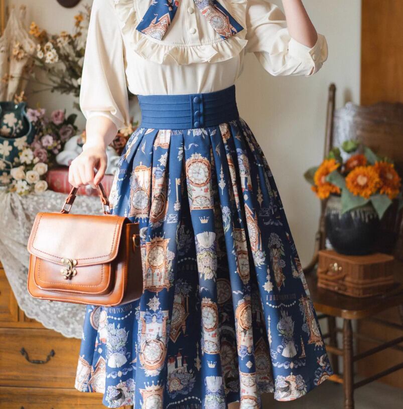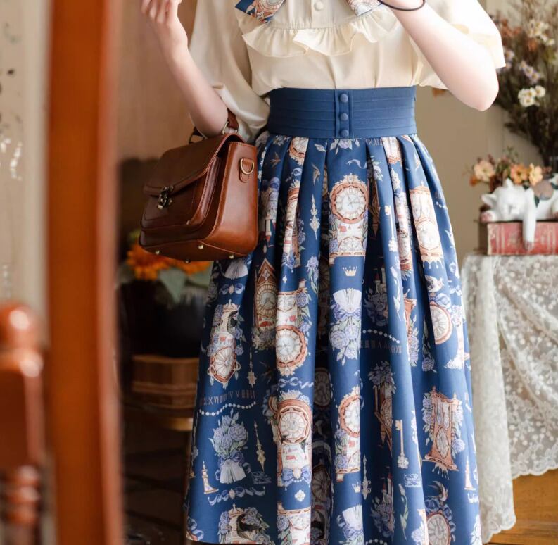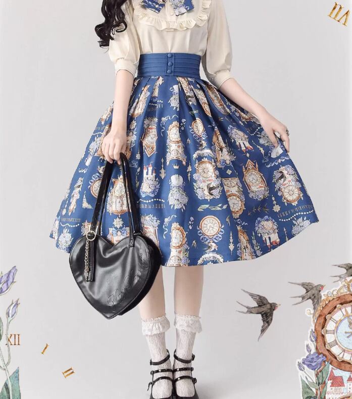 クラシカルロリータ クラロリ スカート のみ 3色 プリント 膝丈 ひざ丈 ミディアム Aライン 森ガール ヴィンテージ フレンチクラシカル エレガント 春夏秋コーデ お茶会
