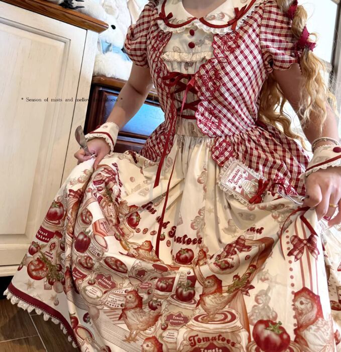 甘ロリ ロリータファッション ワンピース のみ ひよこ アニマル柄 カントリー風 田園風 レトロ ガーリー スウィート 春夏コーデ お茶会 森 ピクニック 田園