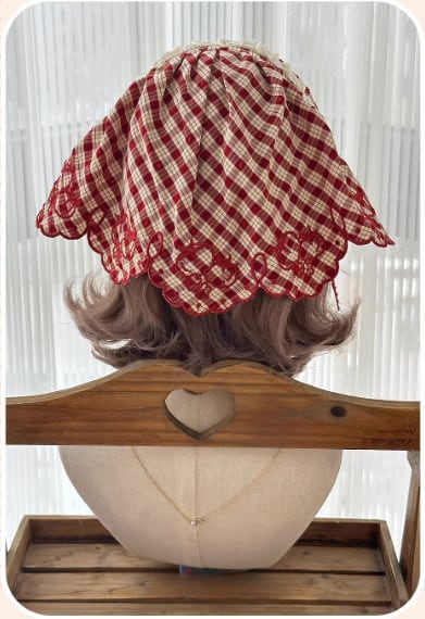 甘ロリ ロリータファッション 三角巾風 ヘッドドレス のみ チェック柄 カントリー風 田園風 レトロ ガーリー スウィート 春夏コーデ お茶会 森 ピクニック
