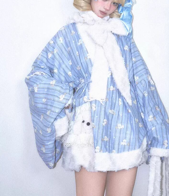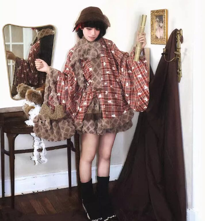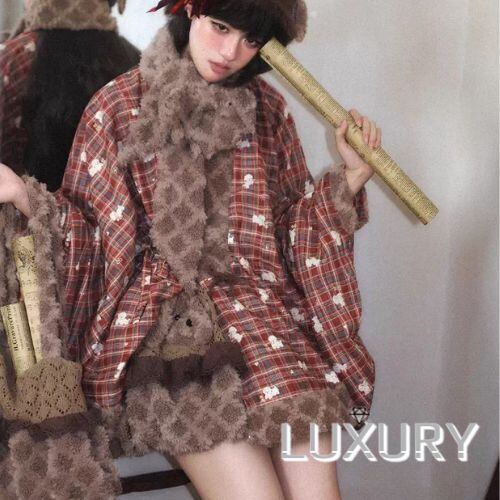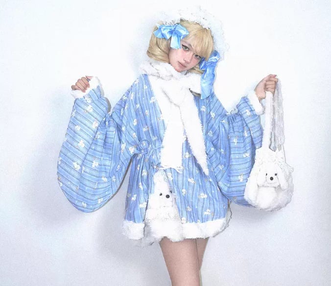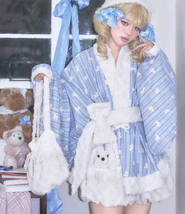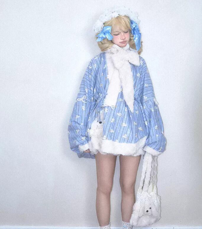 甘ロリ ロリータファッション トップス のみ 2色 もふもふ 小犬 立体感 ファー素材 クロスネック 中国風 チャイナ 童話風 冬 冬物 冬コーデ 冬服 撮影 舞台 撮影用