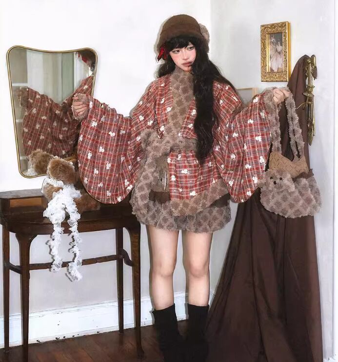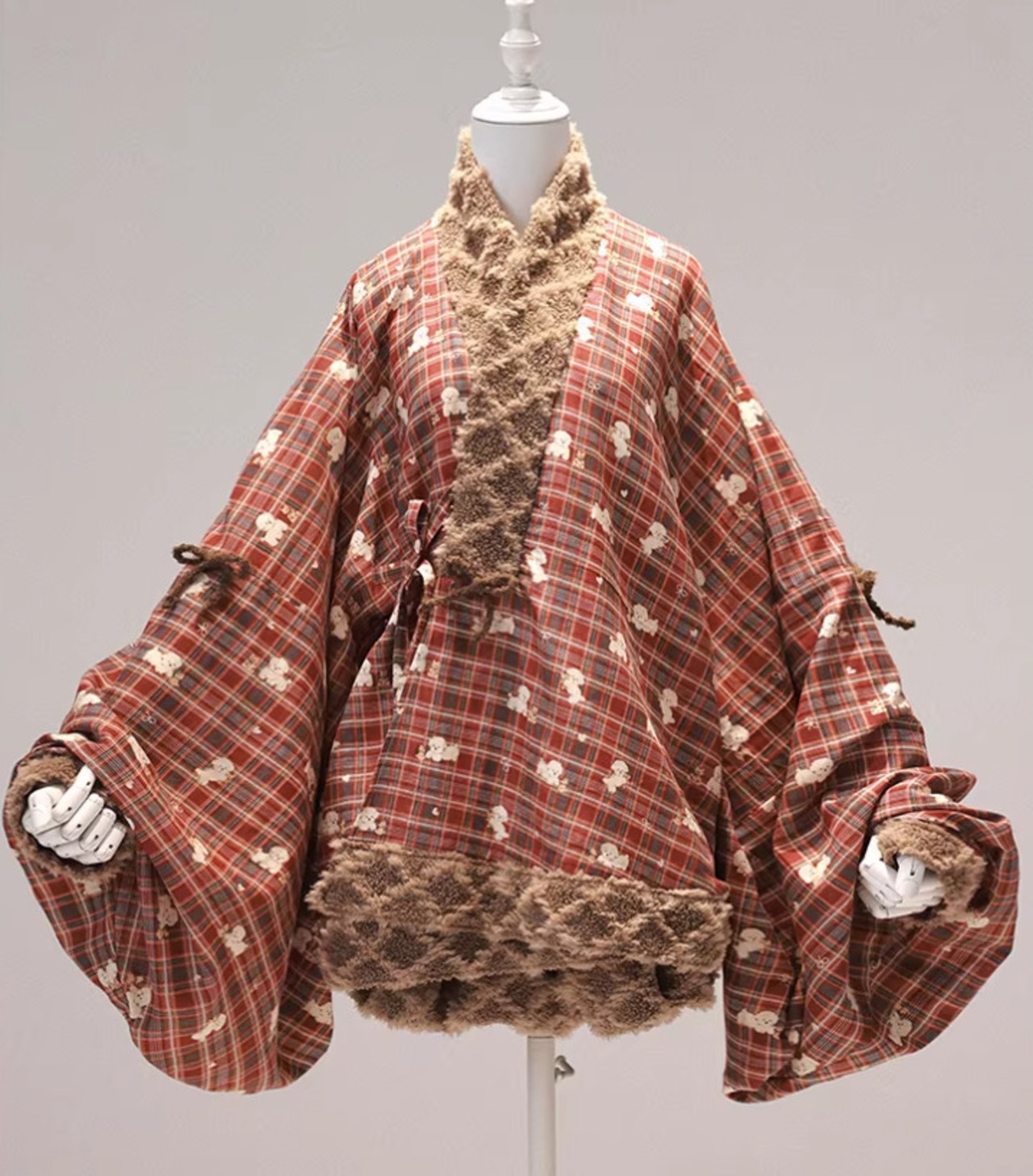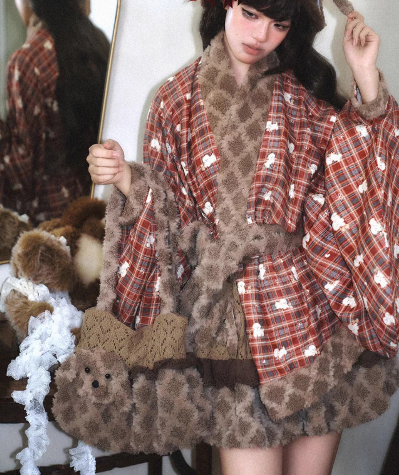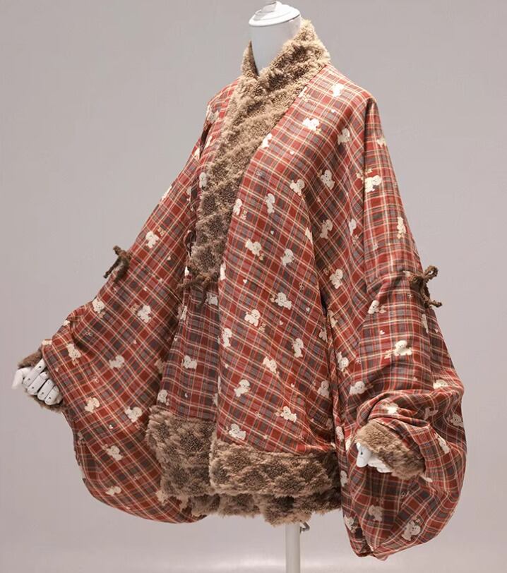 甘ロリ ロリータファッション トップス のみ 2色 もふもふ 小犬 立体感 ファー素材 クロスネック 中国風 チャイナ 童話風 冬 冬物 冬コーデ 冬服 撮影 舞台 撮影用