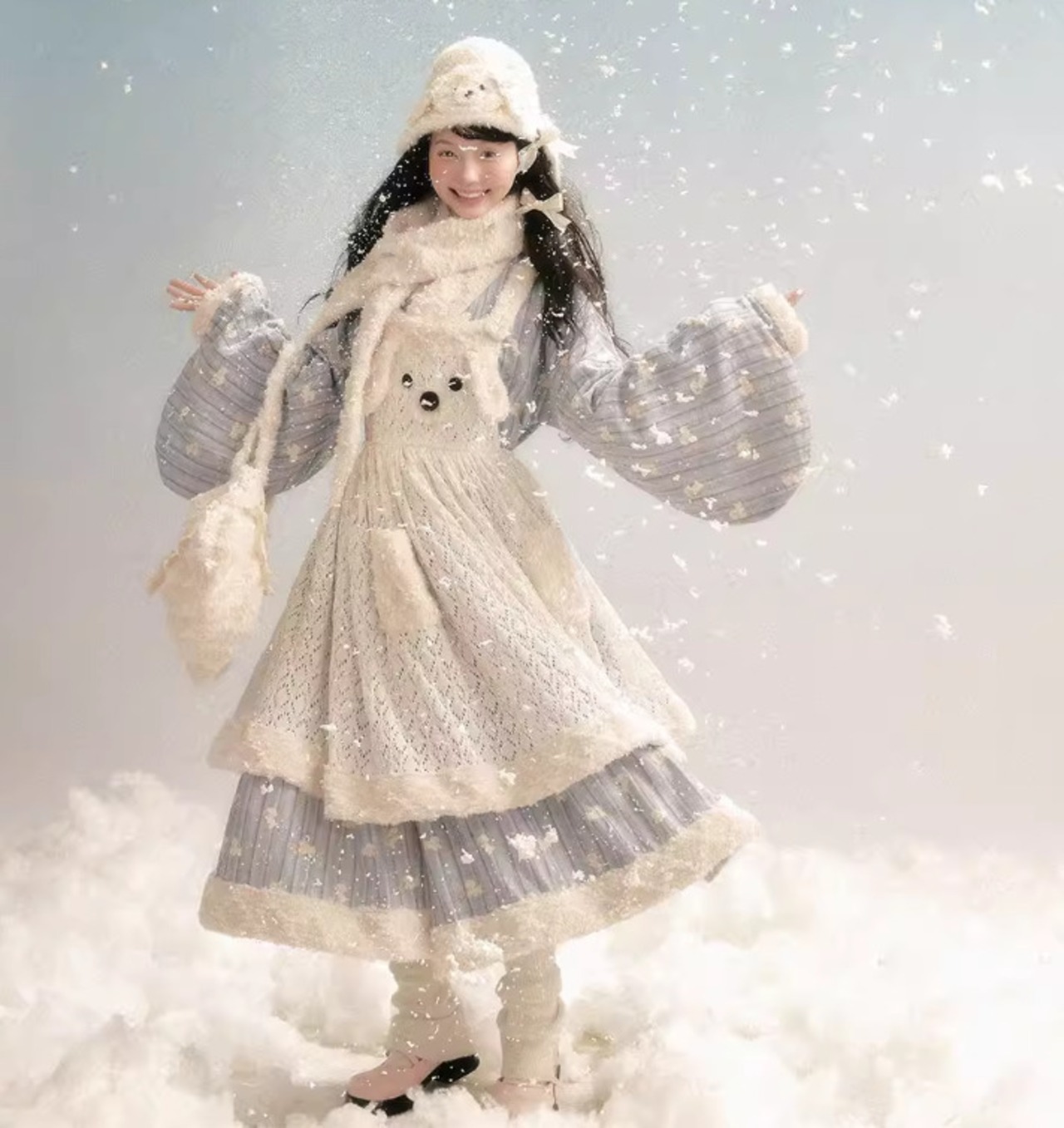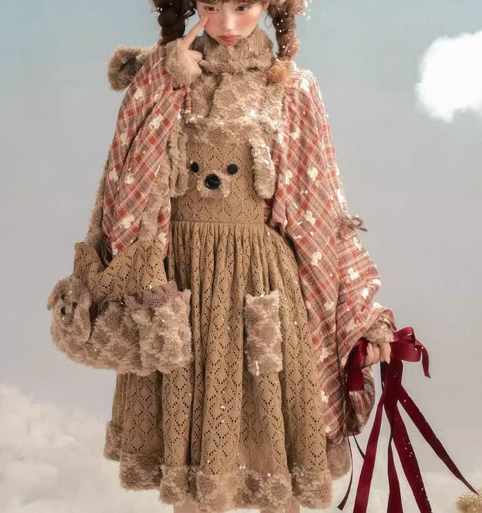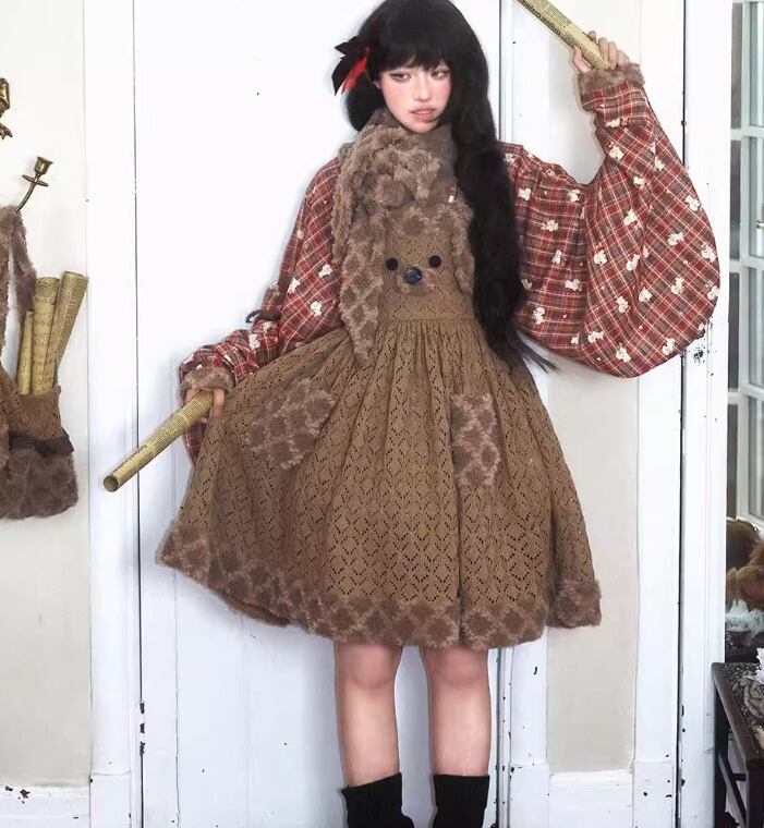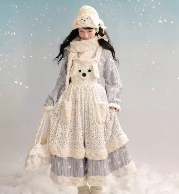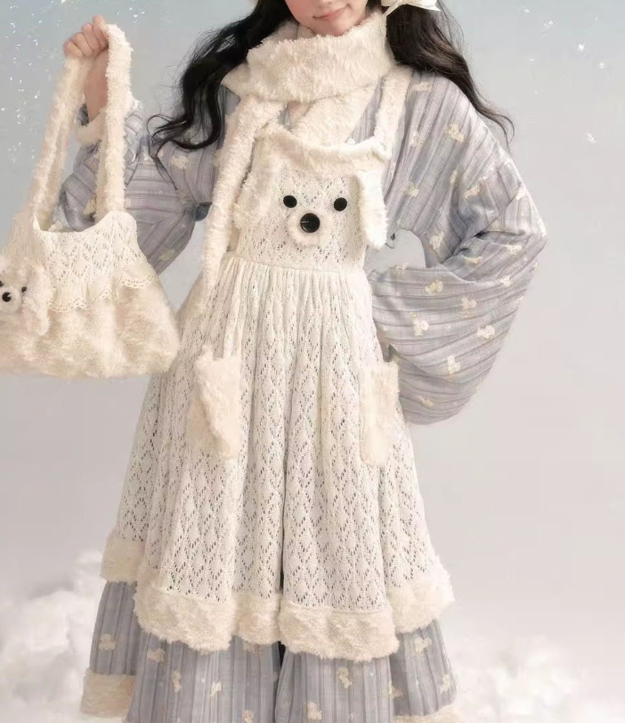 甘ロリ ロリータファッション エプロン のみ 2色 ニット パピー 小犬 森ガール かわいい スウィート ゆめかわ ゆるふわ ラブリー メルヘン モコモコ 撮影 舞台 撮影用
