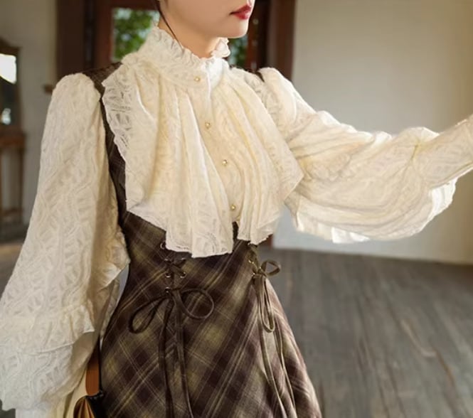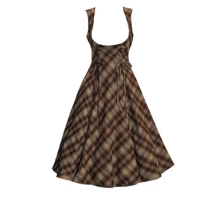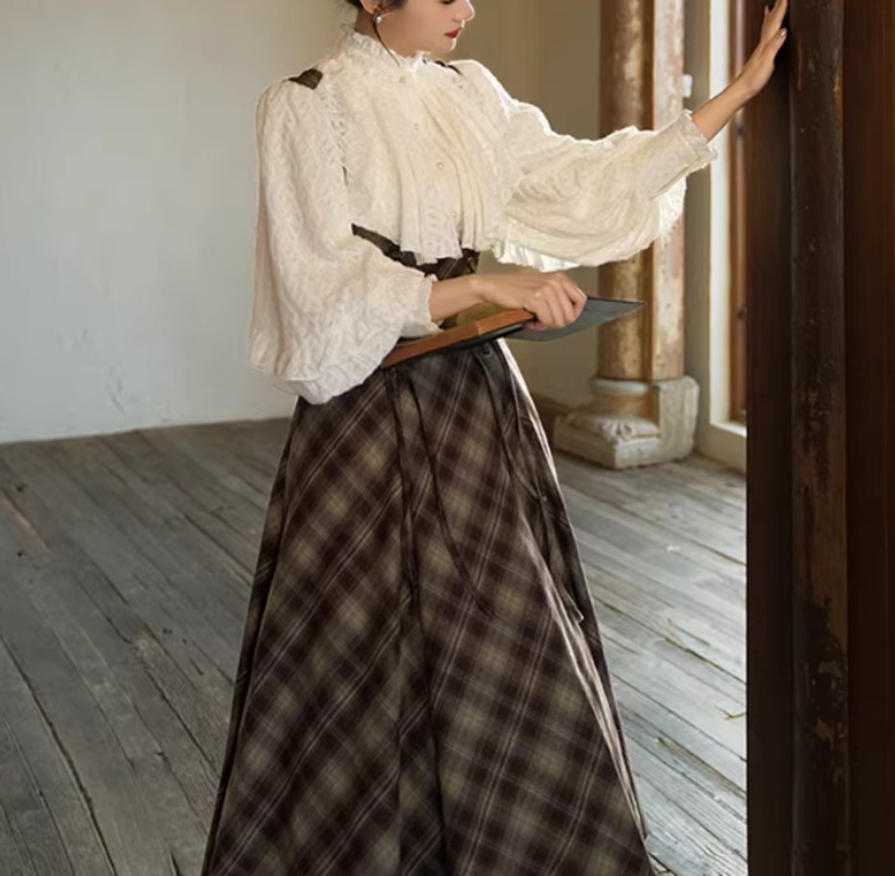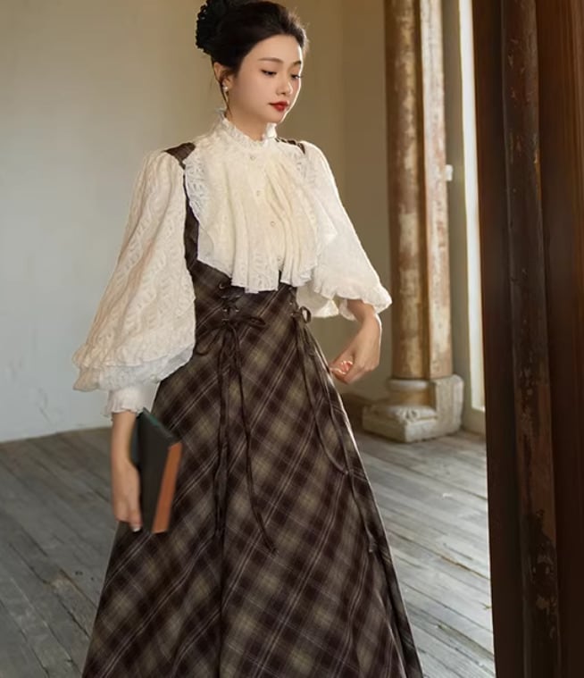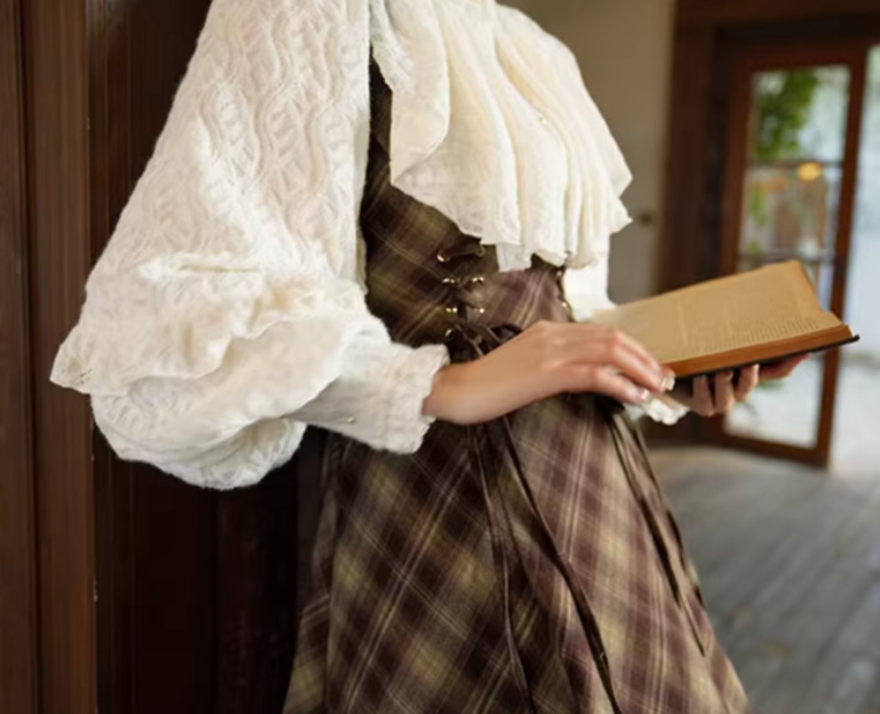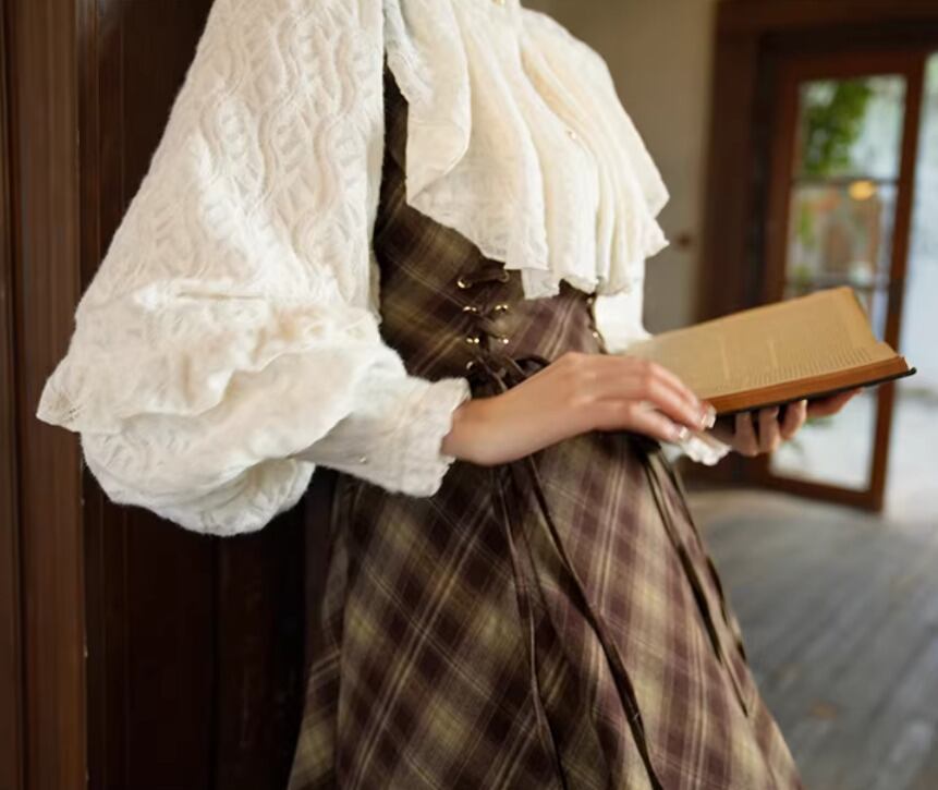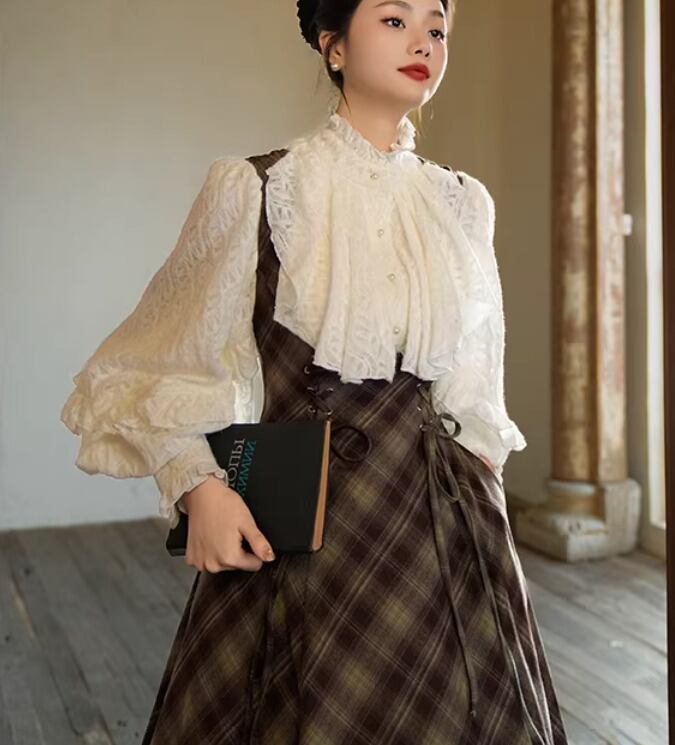 【納期1ヶ月】セミロリータ ジャンパースカート のみ チェック柄 ひざ下丈 ミモレ丈 フレンチクラシカル 宮廷風 ナチュラル 上品 清楚 春秋コーデ お茶会 デート