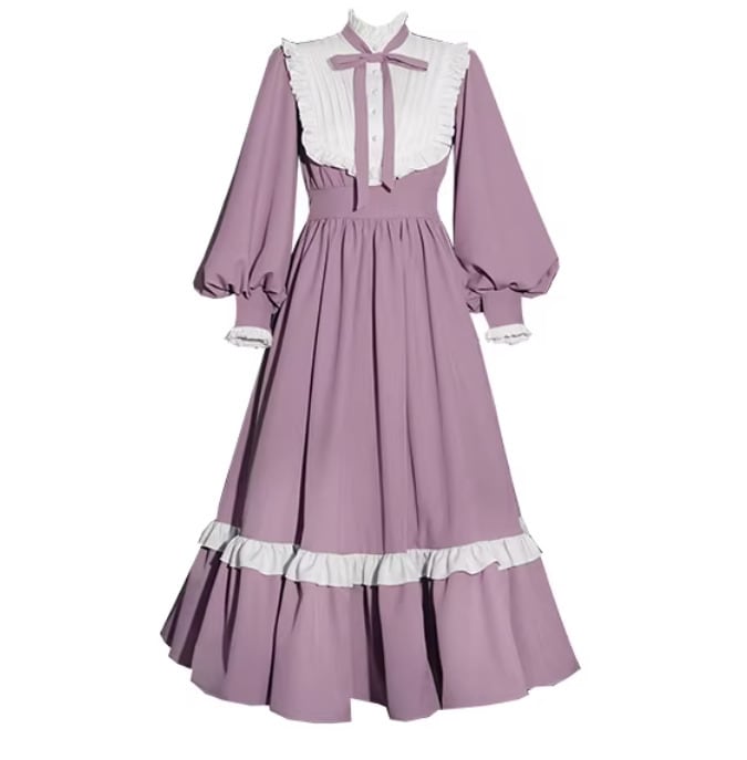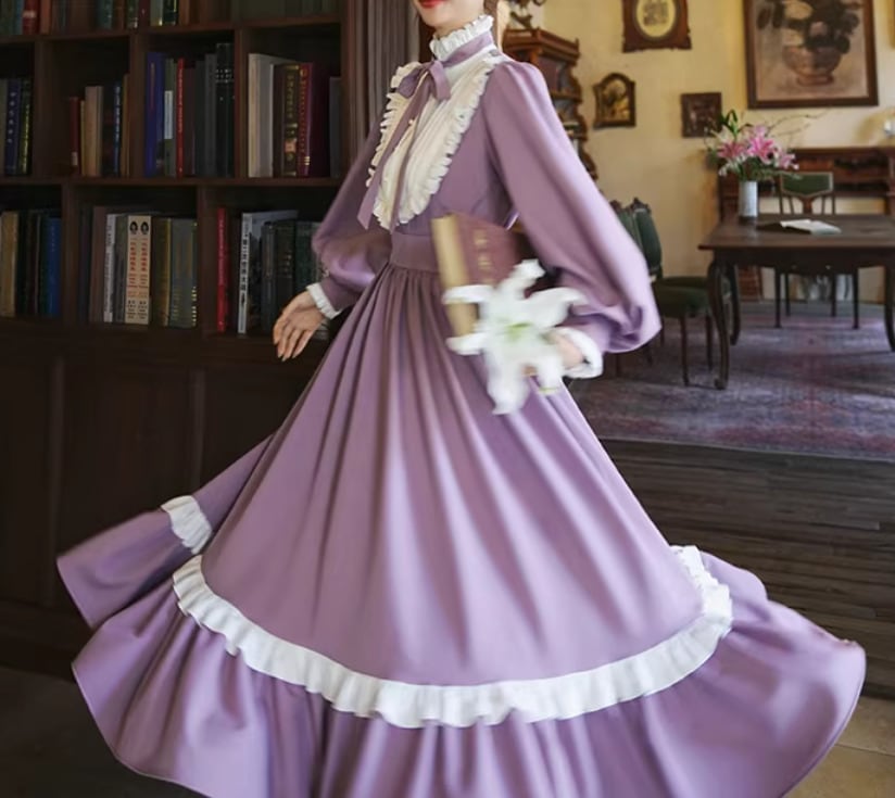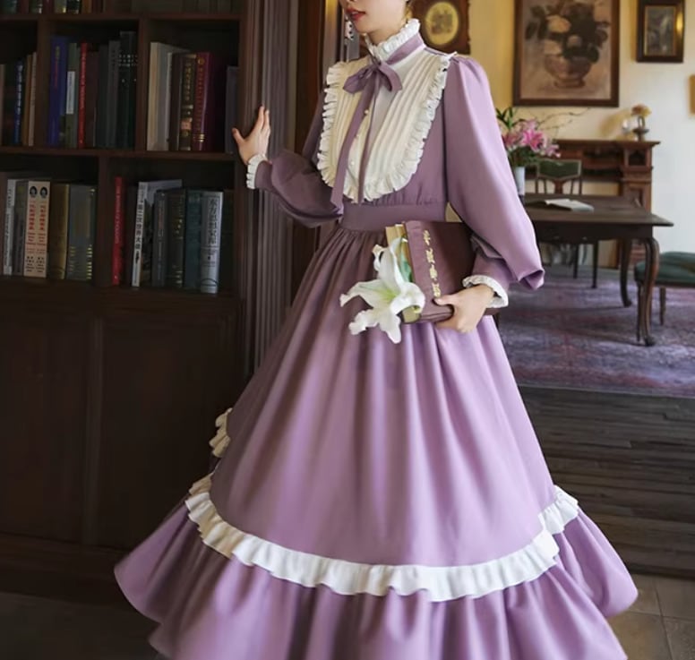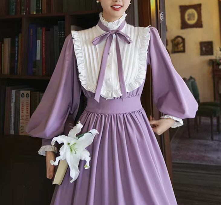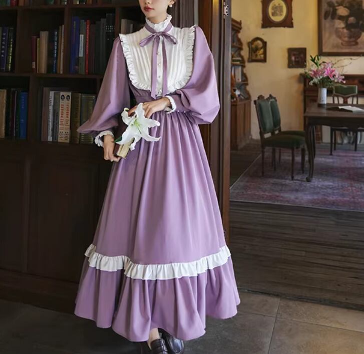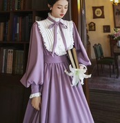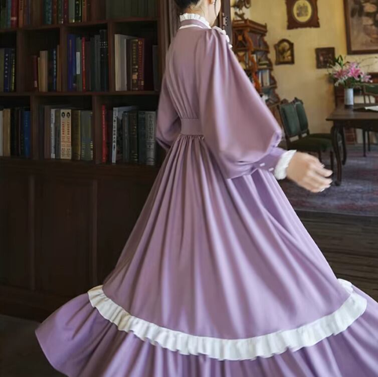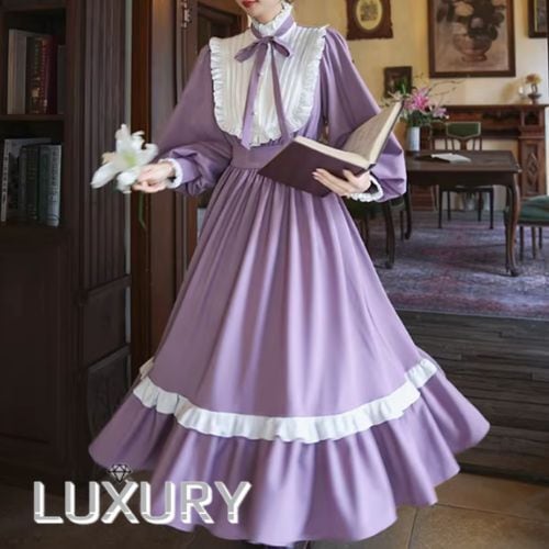 【納期1ヶ月】セミロリータ ワンピース のみ ロング丈 パフスリーブ クラシカル ヴィンテージ フレンチクラシカル 宮廷風 上品 清楚 春秋コーデ お茶会 デート