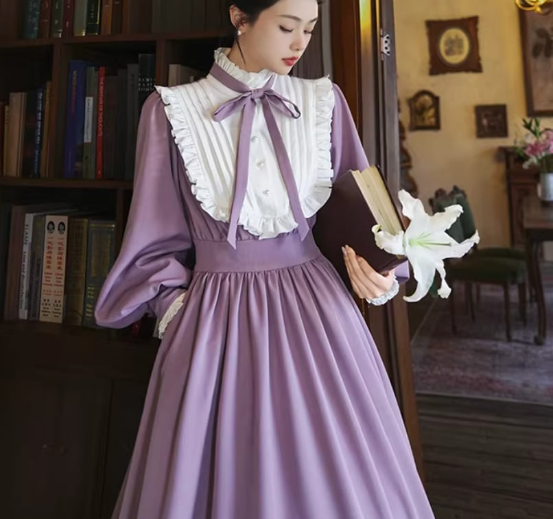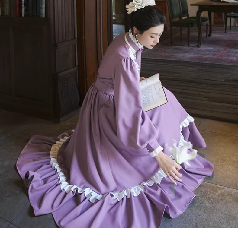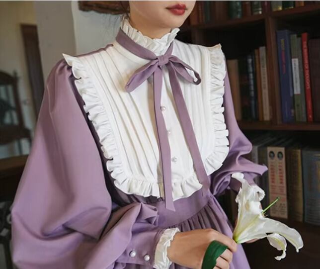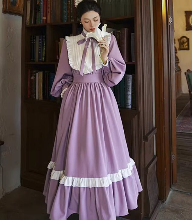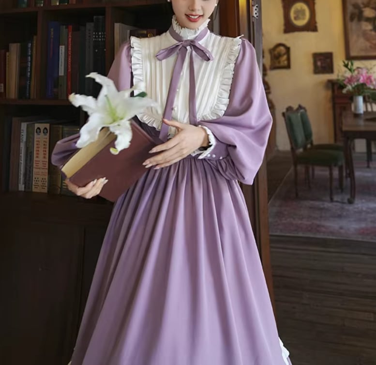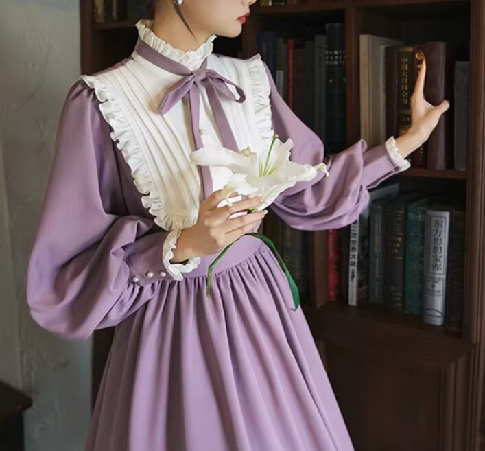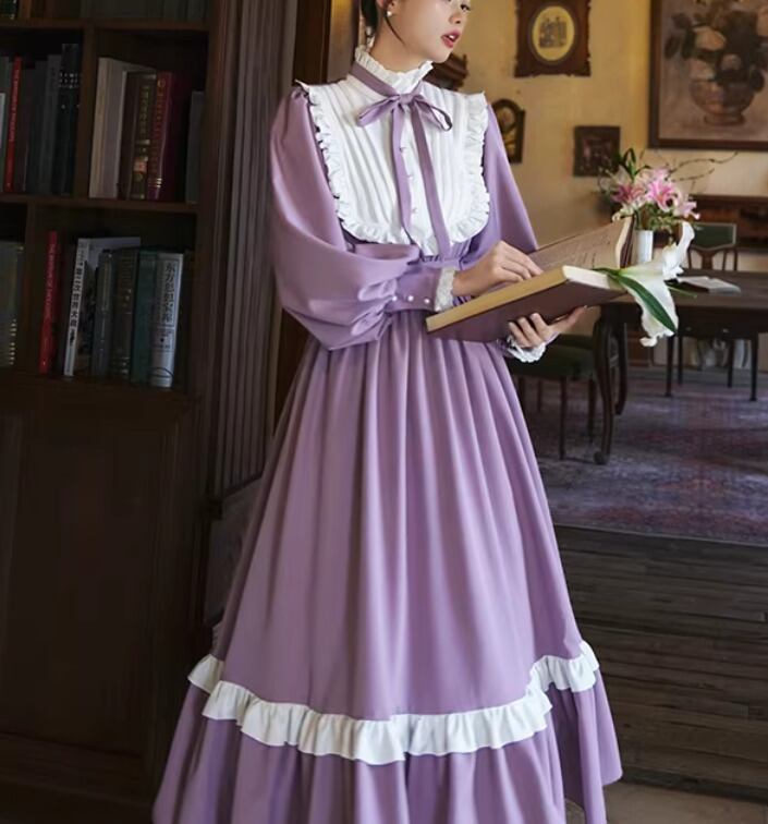 【納期1ヶ月】セミロリータ ワンピース のみ ロング丈 パフスリーブ クラシカル ヴィンテージ フレンチクラシカル 宮廷風 上品 清楚 春秋コーデ お茶会 デート