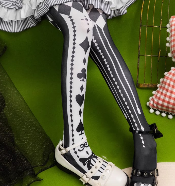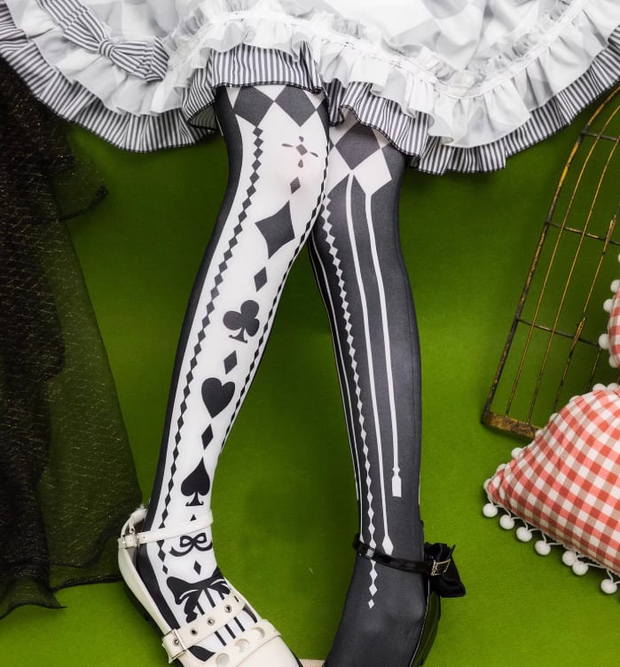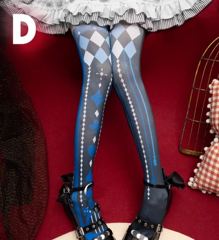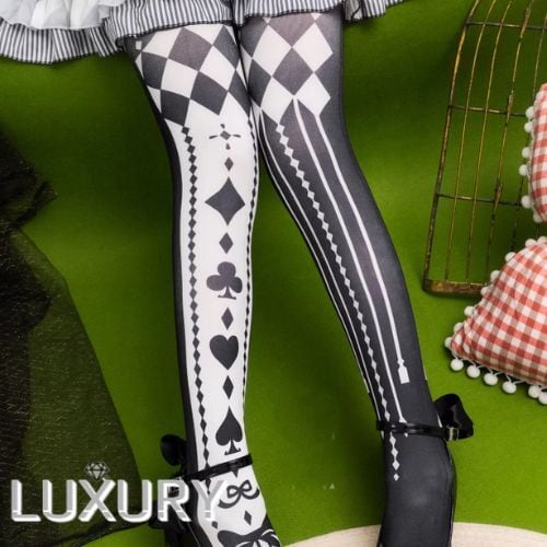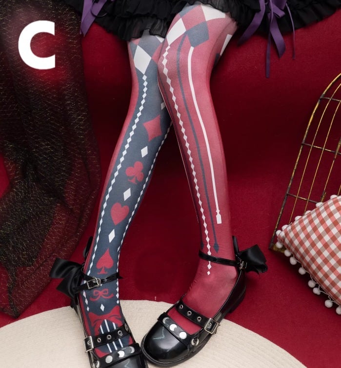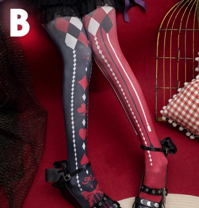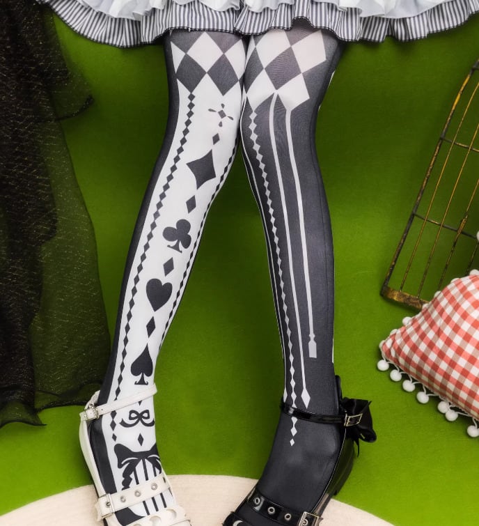 ゴスロリファッション ゴスロリ タイツ のみ 5色 プリント トランプ アリス 童話風 魔女 魔法使い ゴージャス セクシー 妖艶 冬コーデ 冬服 ハロウィン イベント
