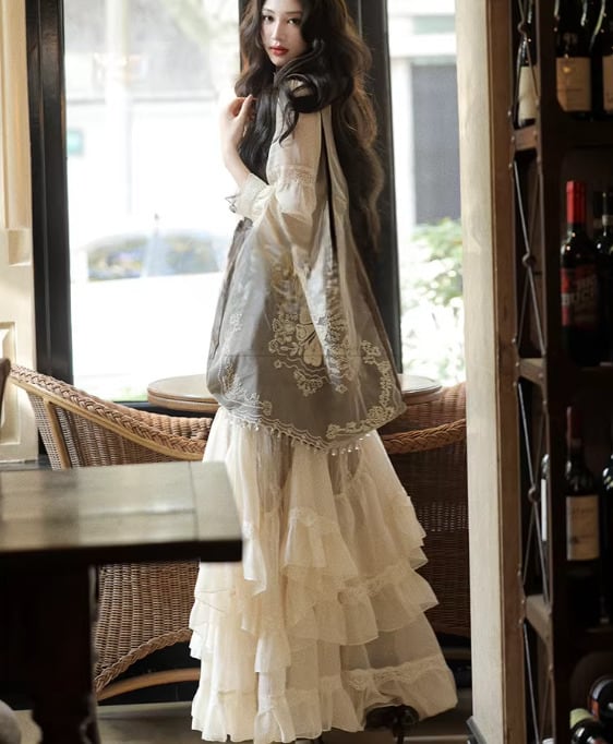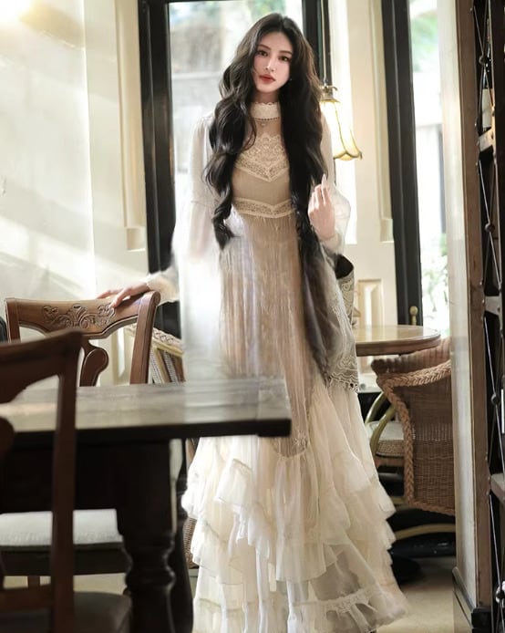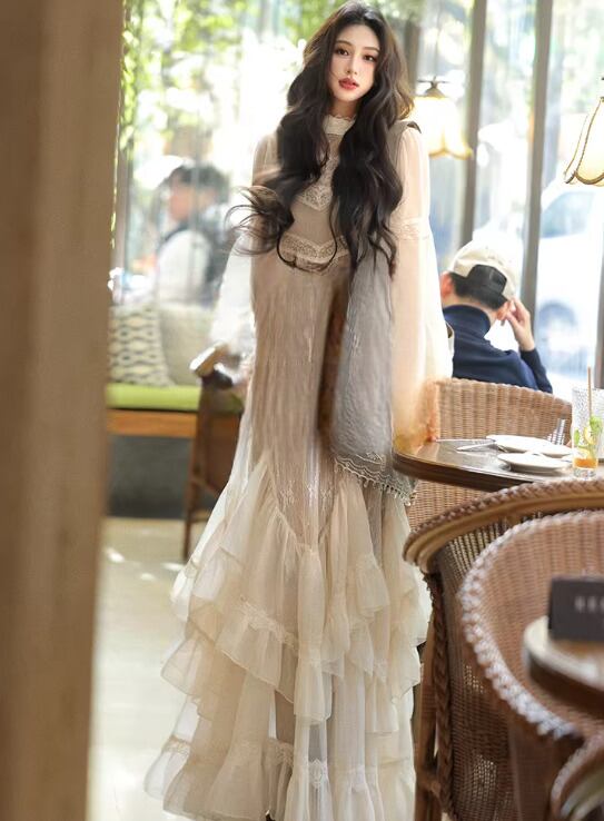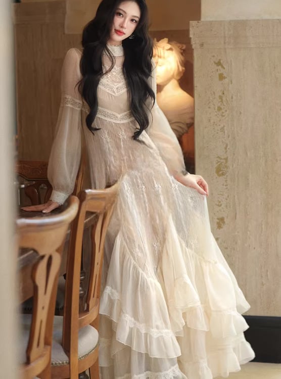 セミロリータ ワンピース キャミソール付き のみ レース フレア ロング丈 レトロ 古風 大人可愛い 上品 フェミニン レディースファッション お呼ばれ パーティー
