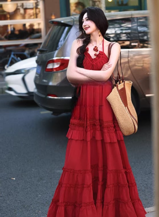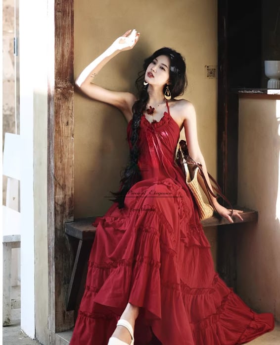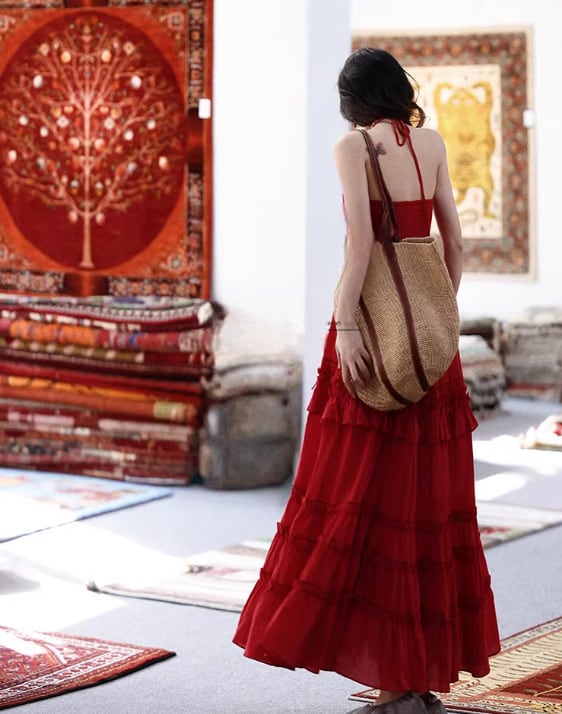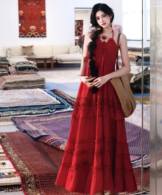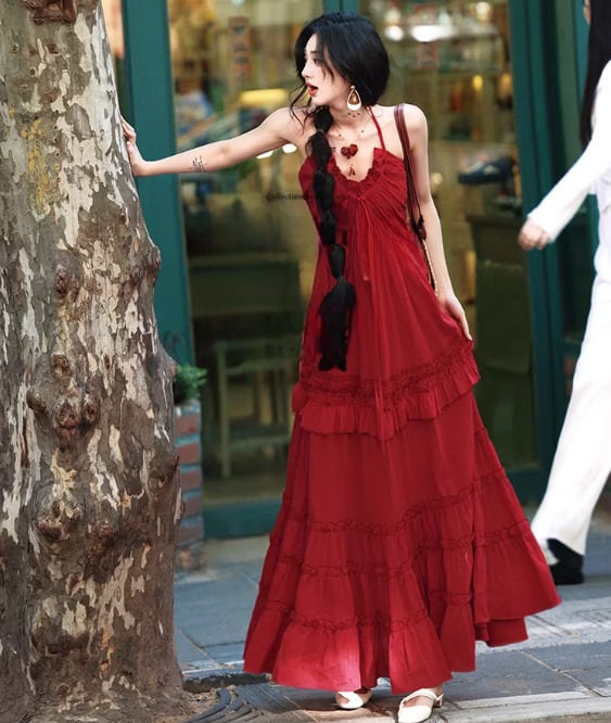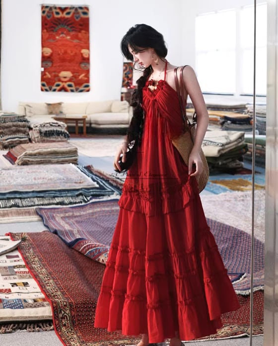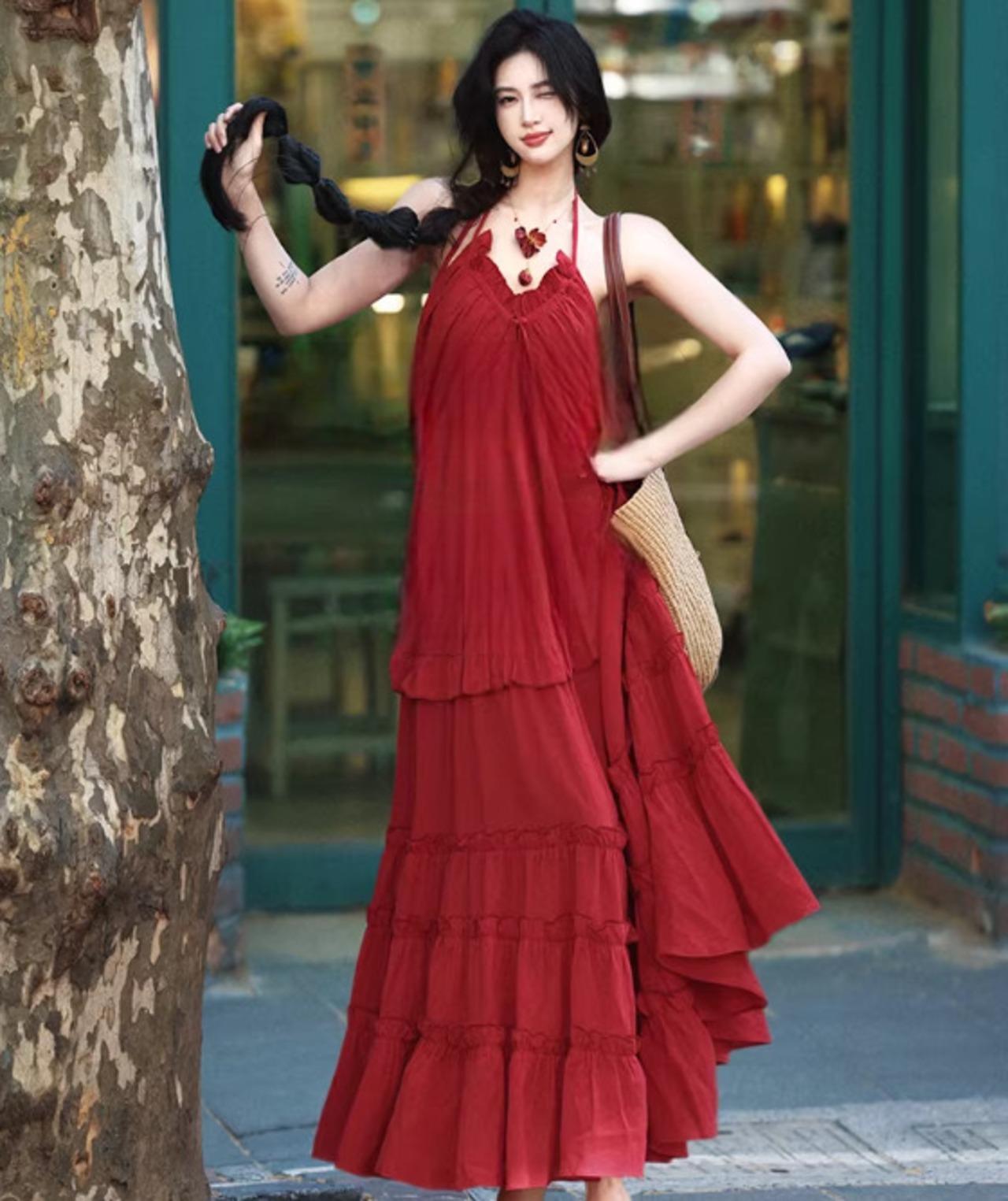 セミロリータ キャミワンピ のみ ホルターネック Vネック ロング丈 バックオープン レトロ 大人可愛い 上品 フェミニン レディースファッション 夏コーデ デイリー お散歩