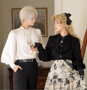 セミロリータ ブラウス のみ 2色 スカーフ風 サテン パフスリーブ レトロ 大人可愛い 上品 エレガント フェミニン レディースファッション お茶会 デイリー デート