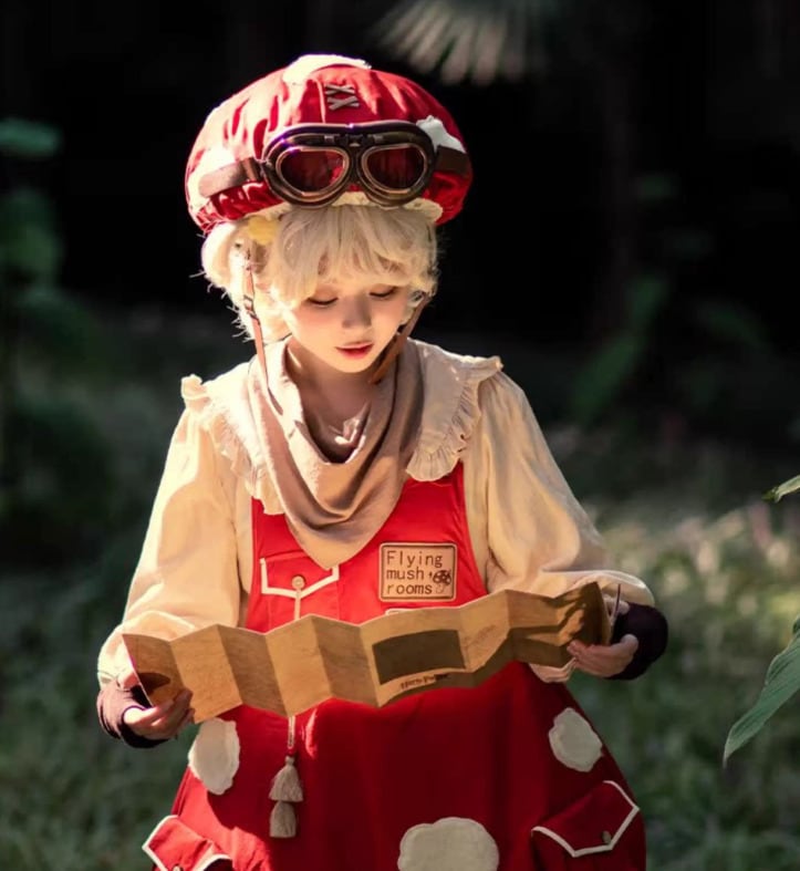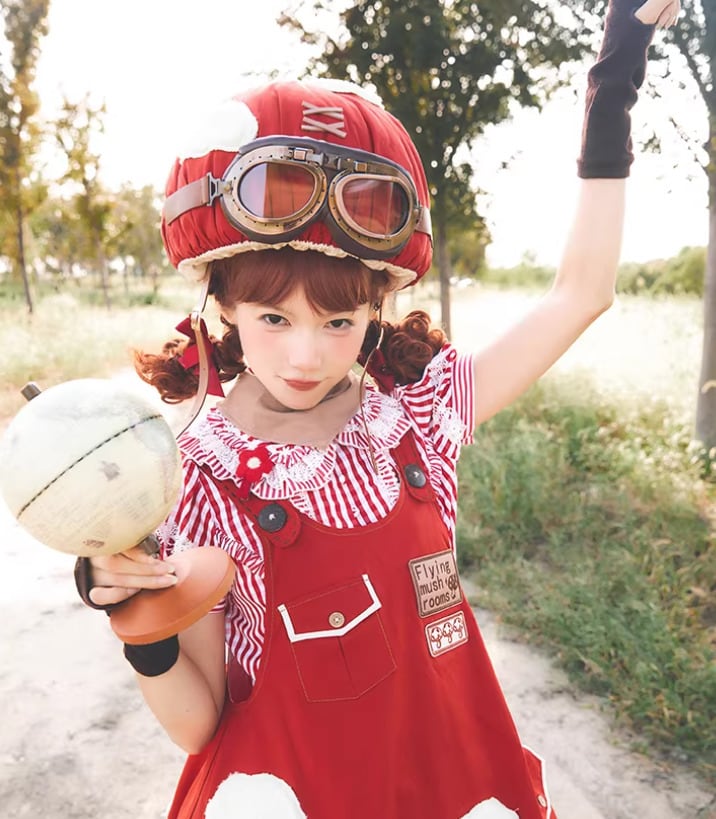 ロリータファッション ゴーグル付き 帽子 のみ マッシュルーム きのこ 童話風 ガーリー かわいい レディースファッション 撮影 舞台 イベント 中綿入り