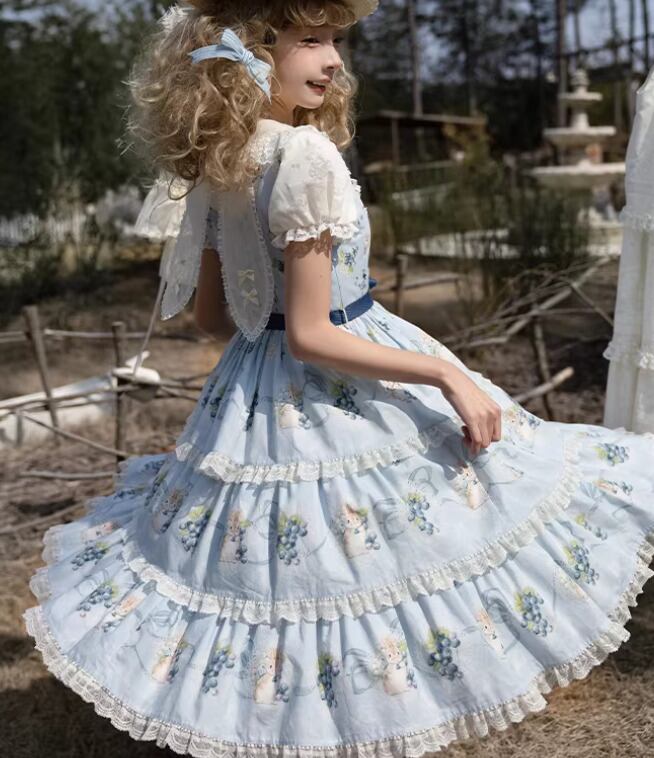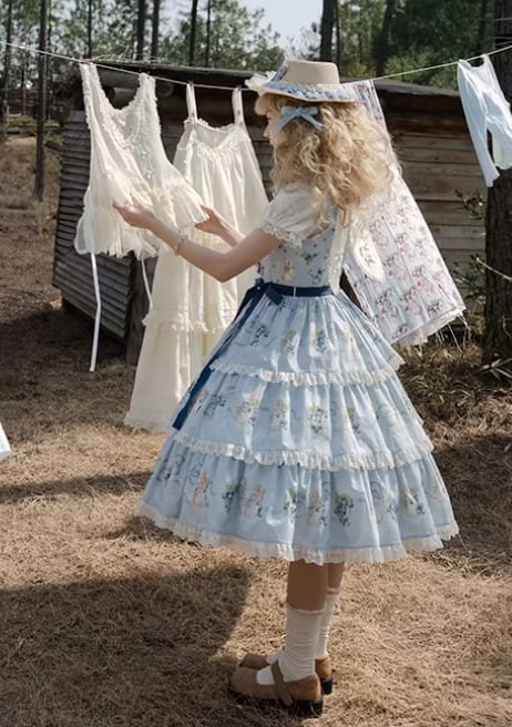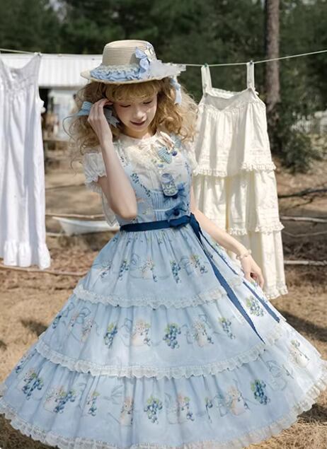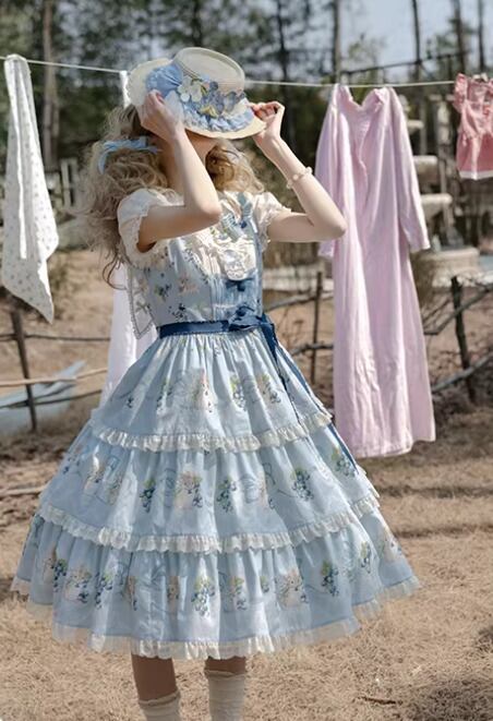 クラシカルロリータ クラロリ ジャンパースカート のみ 3色 花柄 お花 プリント 膝丈 ひざ丈 ミディアム 童話風 森ガール かわいい 夏コーデ 森 ピクニック 田園 お散歩