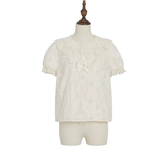 クラシカルロリータ クラロリ 半袖 ブラウス のみ ナチュラル 上品 レトロ 童話風 森ガール かわいい 夏コーデ 森 ピクニック 田園 お散歩