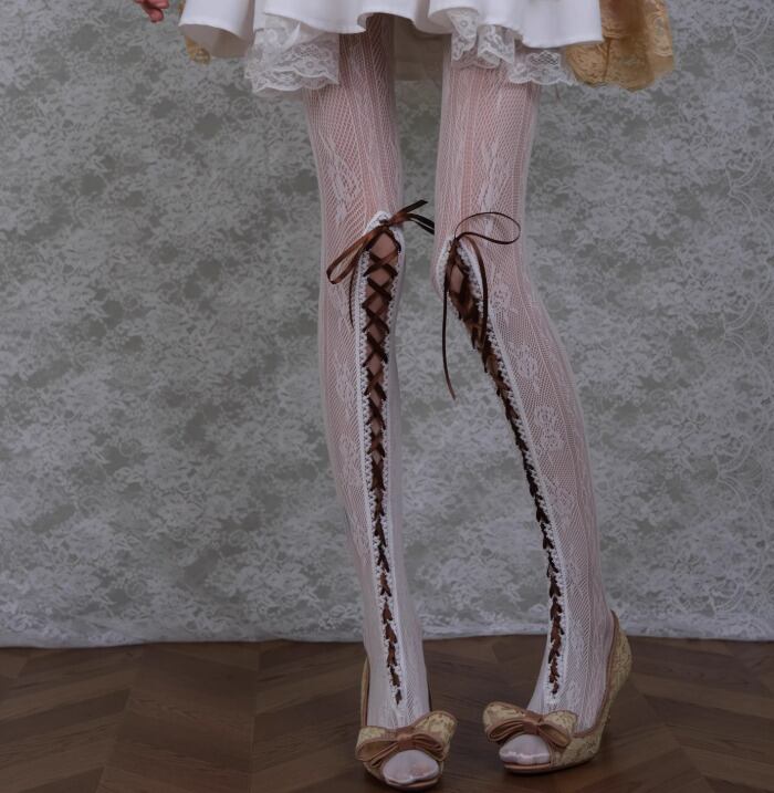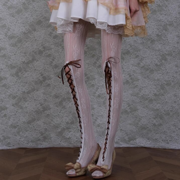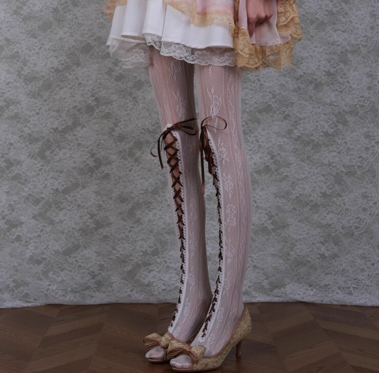ロリータファッション 甘ロリ 姫ロリ レースタイツ のみ 編み上げ レトロ 古風 アンティーク ヴィンテージ風 フェミニン かわいい ガーリー 秋冬コーデ イベント お呼ばれ パーティー