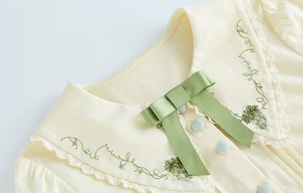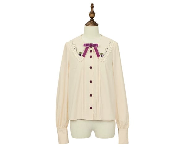 クラシカルロリータ クラロリ ブラウス のみ 襟元リボン付き 長袖 上品 レトロ 古風 ナチュラル 森ガール スウィート かわいい レディース 森 ピクニック お茶会
