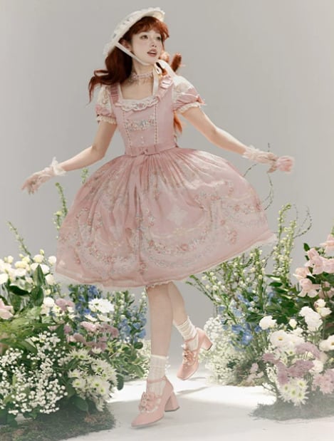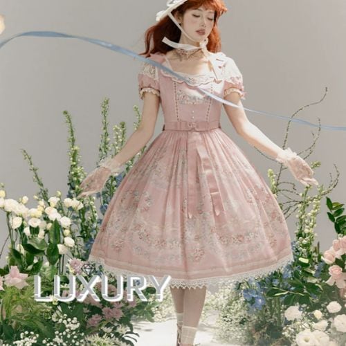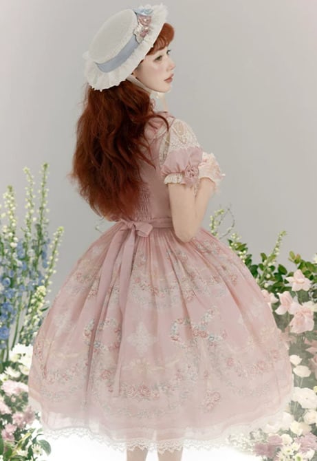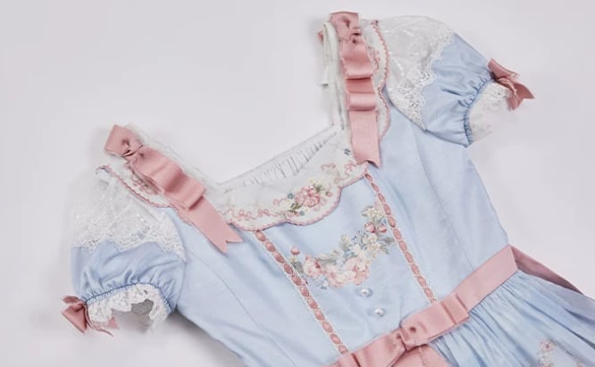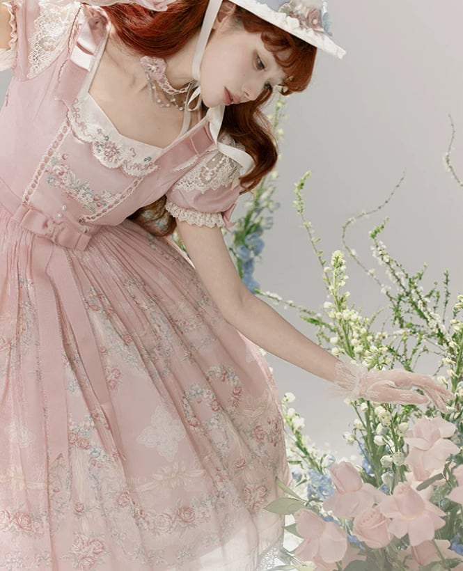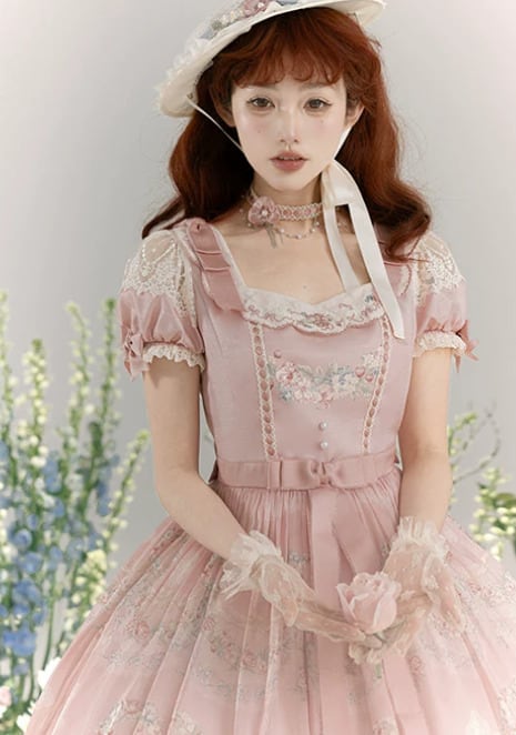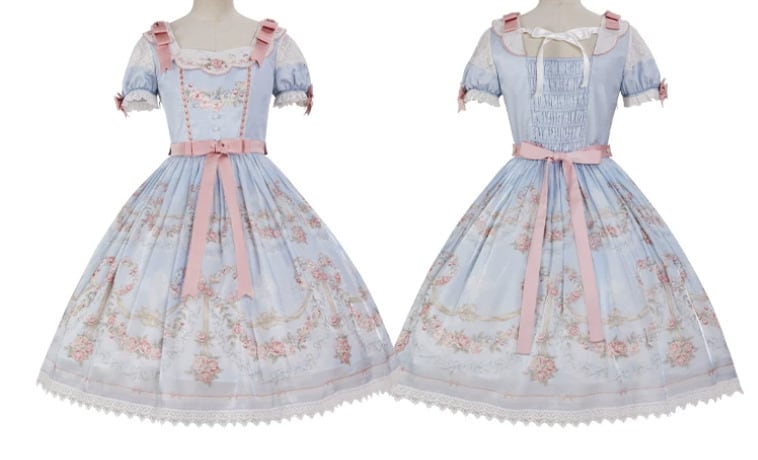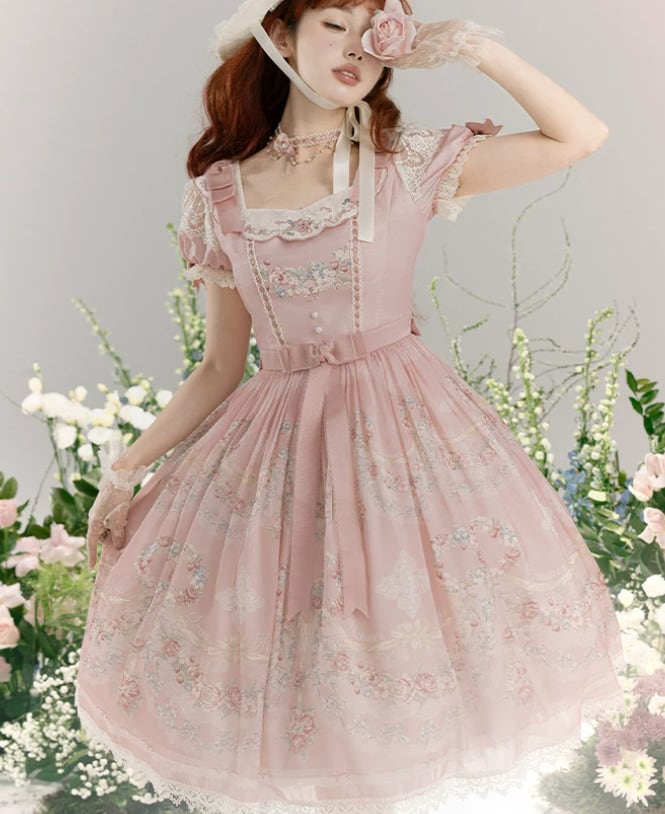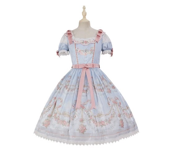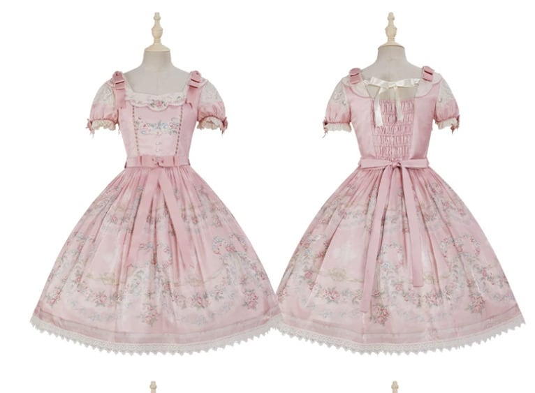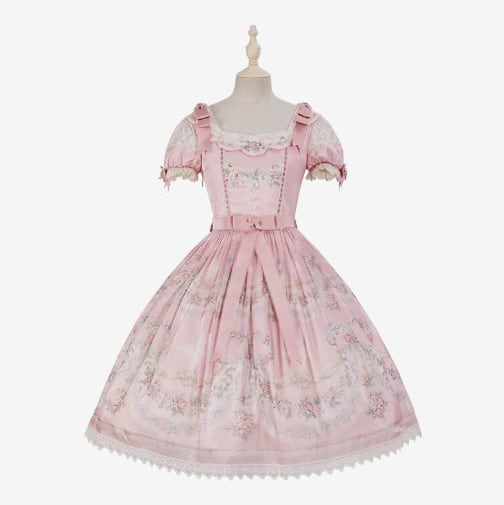 クラシカルロリータ 甘ロリ ワンピース のみ フレア レース風 半袖 膝丈 お嬢様 上品 ガーリー レディースファッション パーティー お茶会